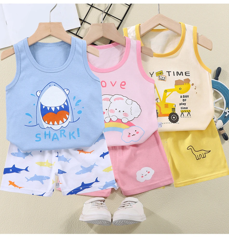 Name: 2025 New Kids Tank Tops and Shorts Set Summer Baby Toddler Sleeveless Outfit Girls Boys Casual Breathable Cartoon Clothing