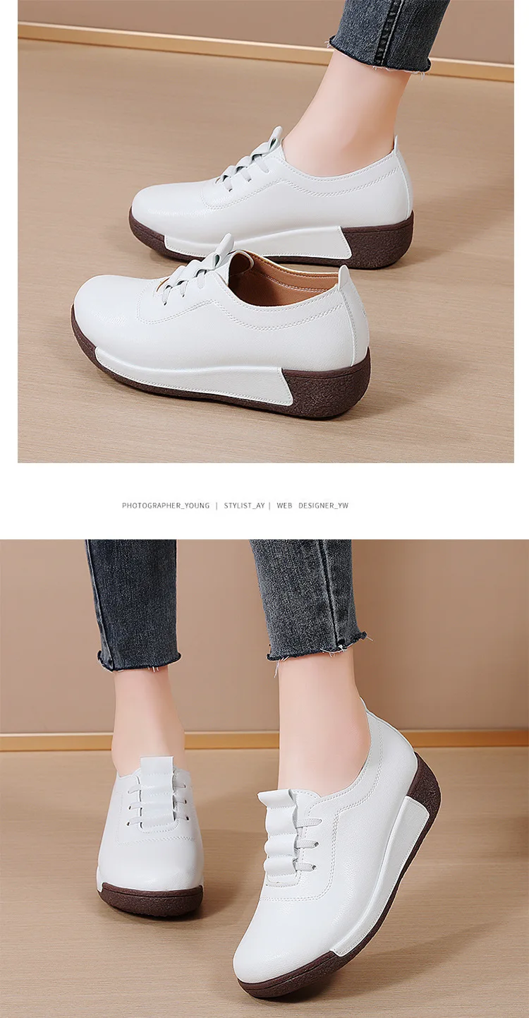 2025 Women Casual Shoes Genuine Leathe Platform Loafers for Women Wedge Sneakers Zapatos Mujer Fashion Slip on Ladies Moccasins