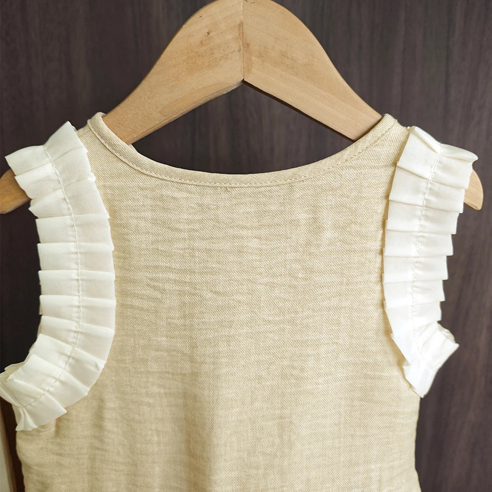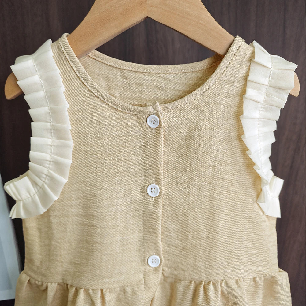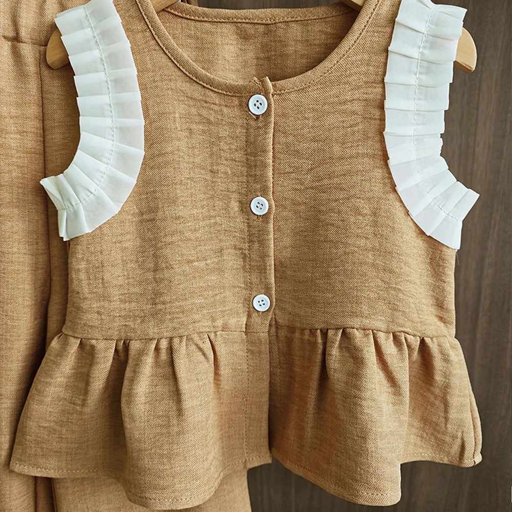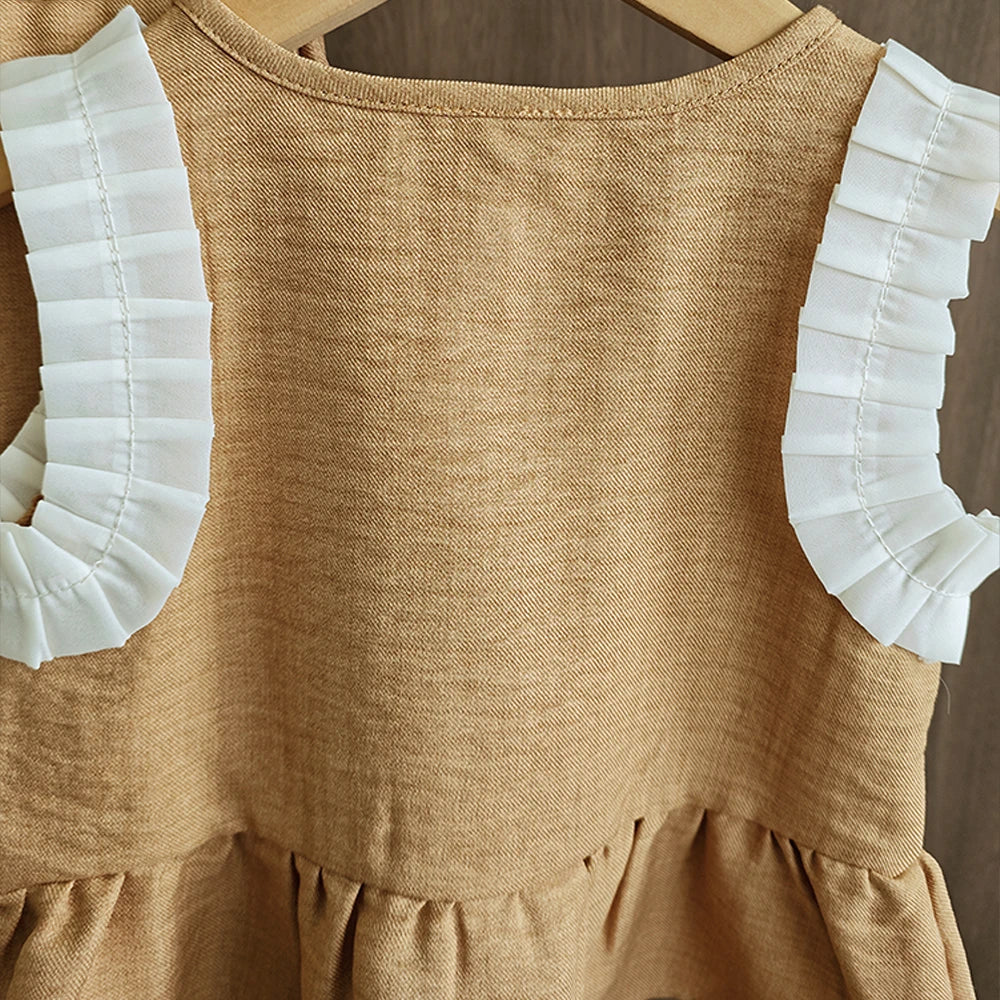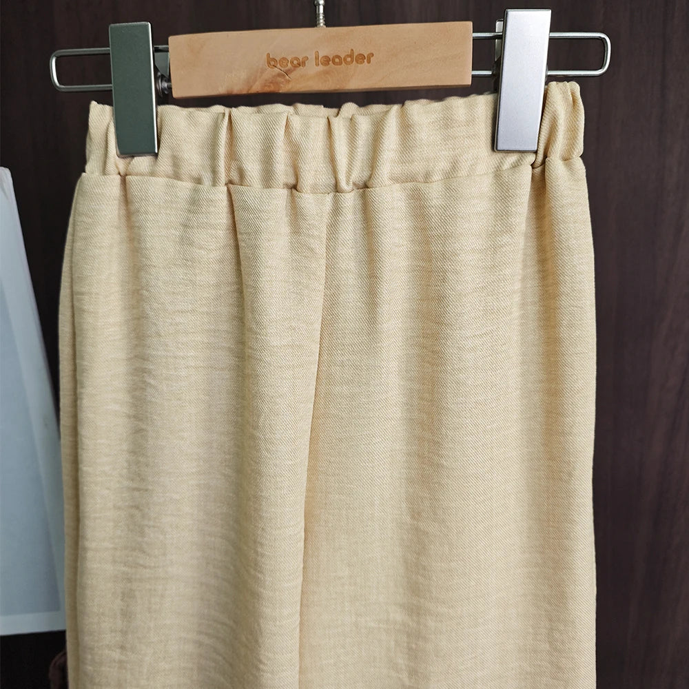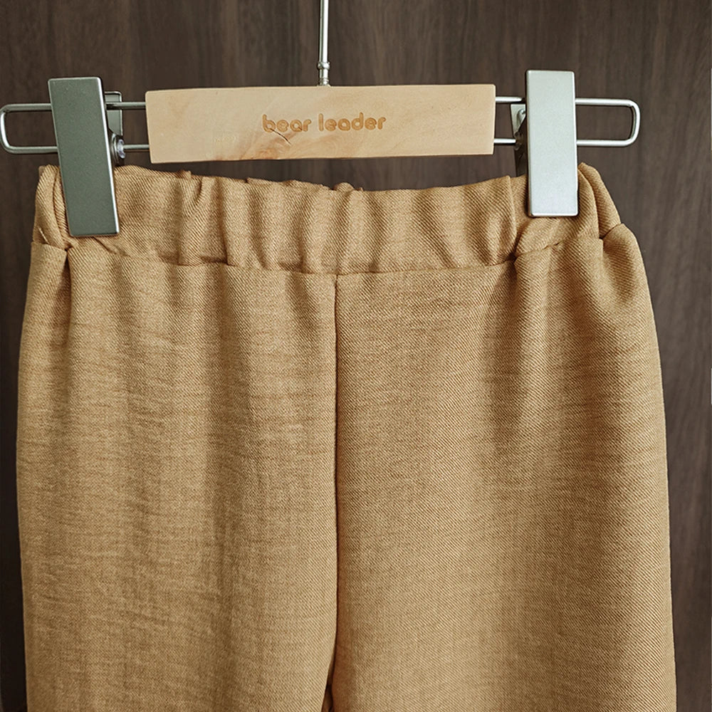 Bear Leader Korean Version Kids Clothes Girls Blue Imitation Denim Suit Summer New Sleeveless Top+Wide Leg Pants Two-piece Set