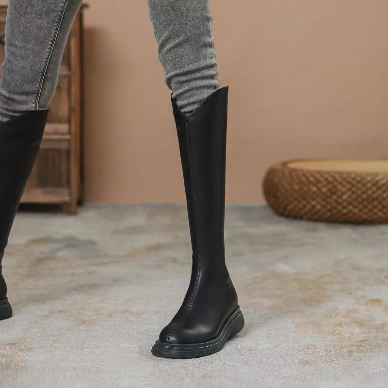 Boots Women's Autumn and Winter New Flat Bottom Black Long BootsVVersatile Slimming Long Boots Height Increasing Elastic High
