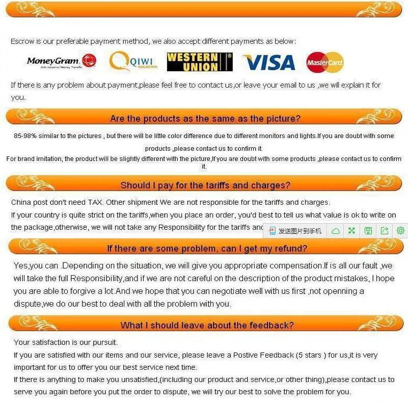 Please contact me to inform your favorite style, so i can arrange the goods for you sooner, sometimes, there's any styles ARE OUT OF STOCK, so please get contact me before you place the order.Orleave more additional style numbersfor me in case that there is any style out of stock. Please kindly be informed,we don't assume the additional import tax of your counrtry, do not give bad feedback because of it.Thank you very much!