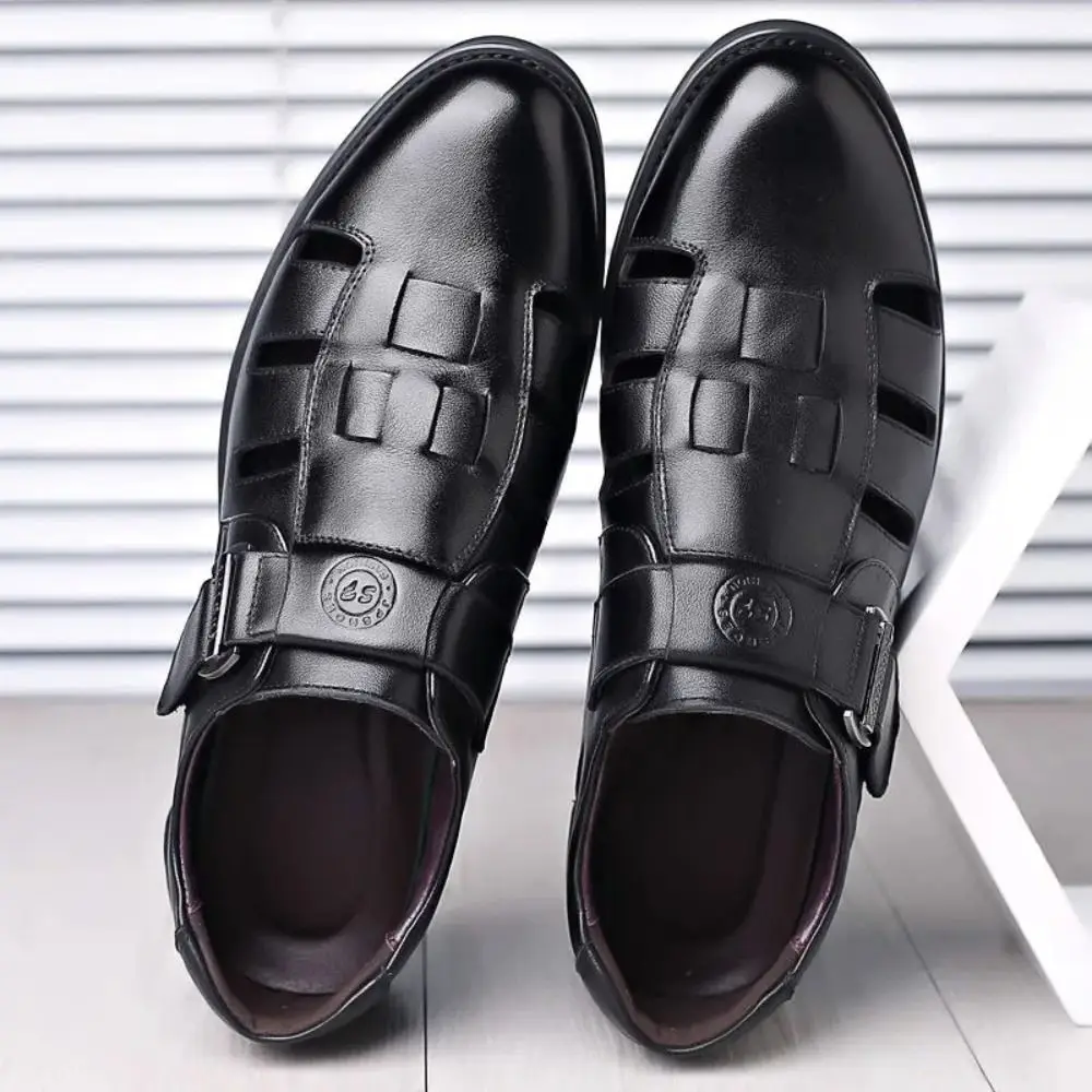 Classic Business PU Sandals Men Breathable Comfortable Hollow Leather Shoes Outwear Beachwear Men's Slippers Shoes Male