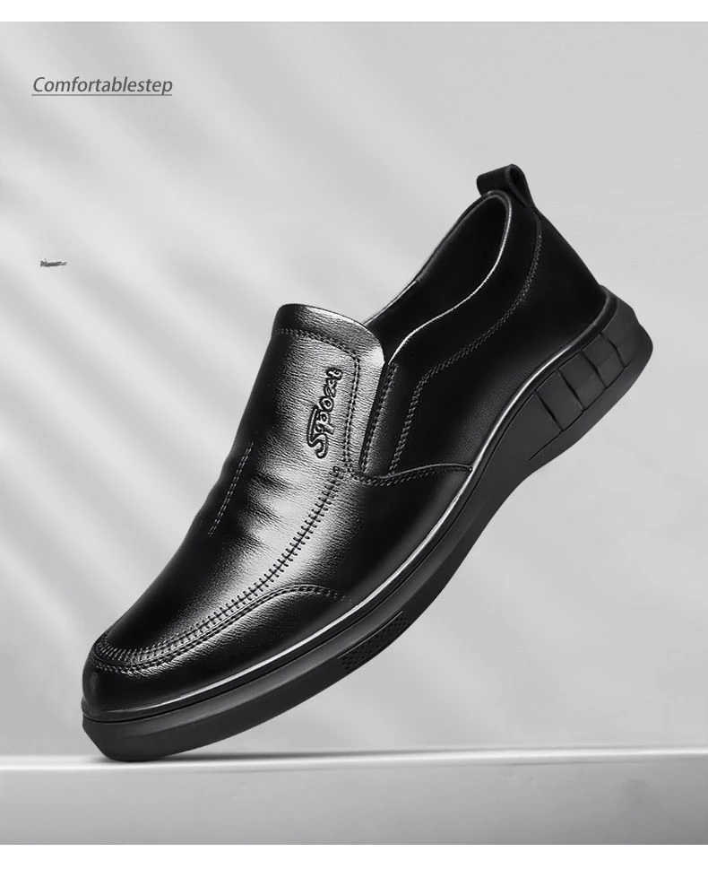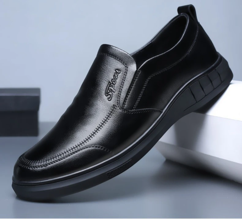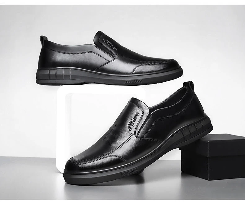 Classic Men's Leather Shoes New Black Soft Bottom Anti Slip and Breath Shoes Low-top Business Casual Loafers Formal Men's Shoes