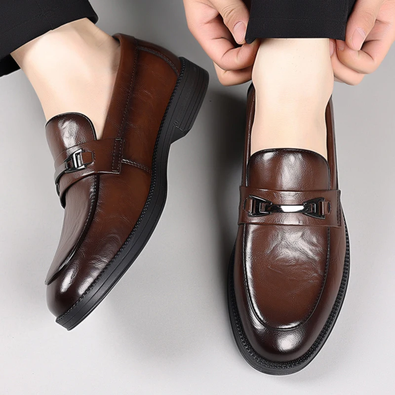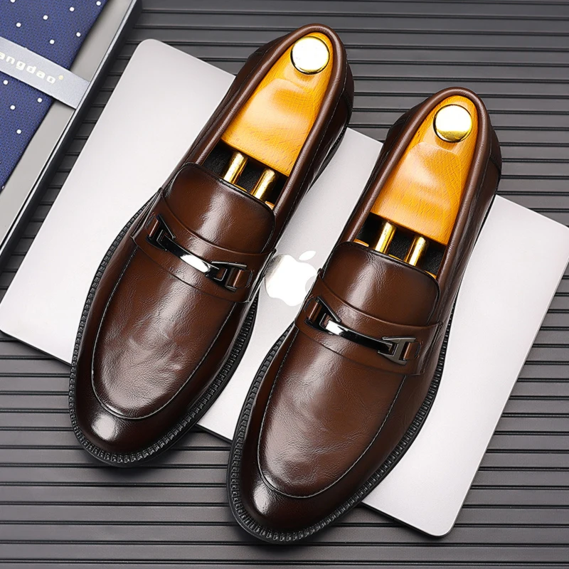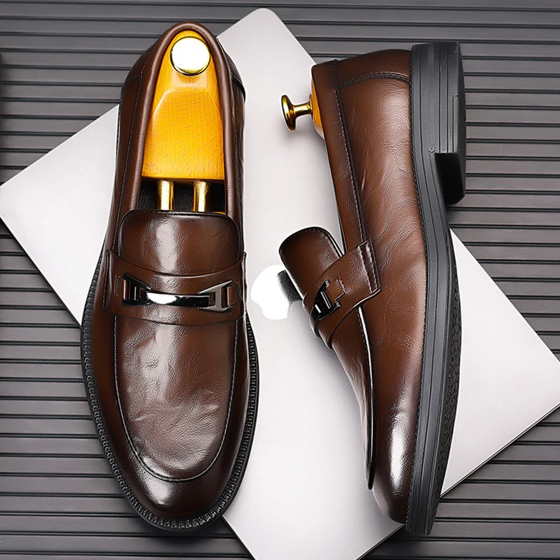 Classic Style Men's Fashionable Business Casual Leather Shoes Spring British Retro Comfortable Soft Sole Loafers Driving Shoes