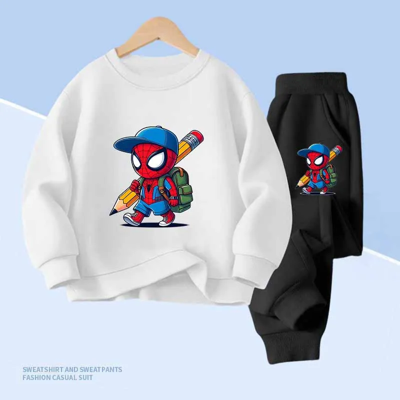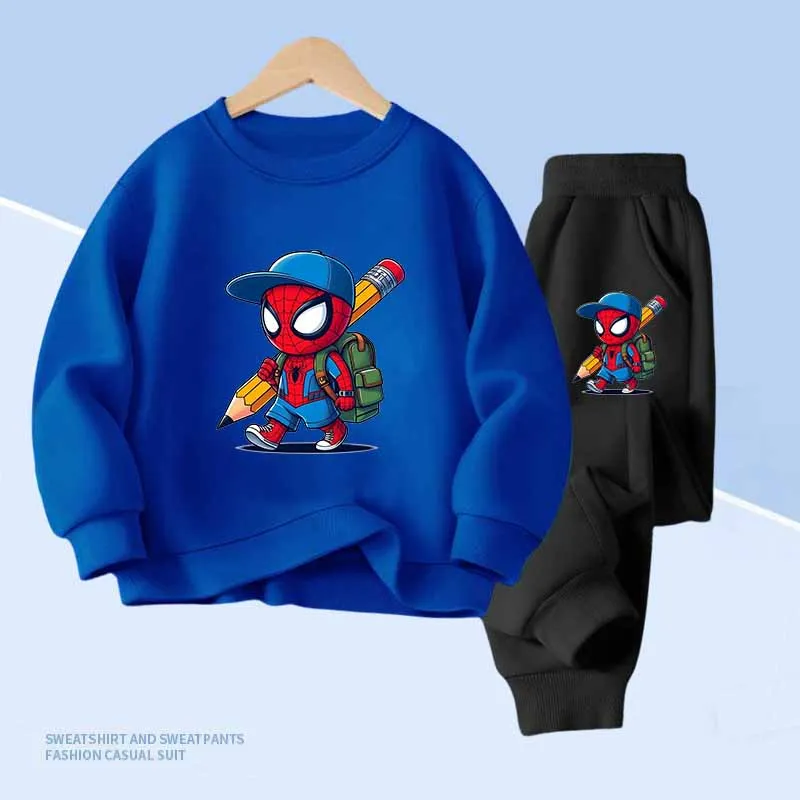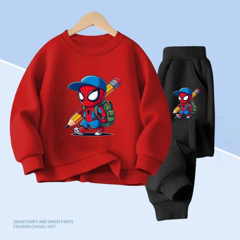 Disney Spider-Man Print Children's Hoodies and With Pocket Long Pants 2 Pcs Sweatshirt for Boys and Girls 2pcs Kids Clothes Set
