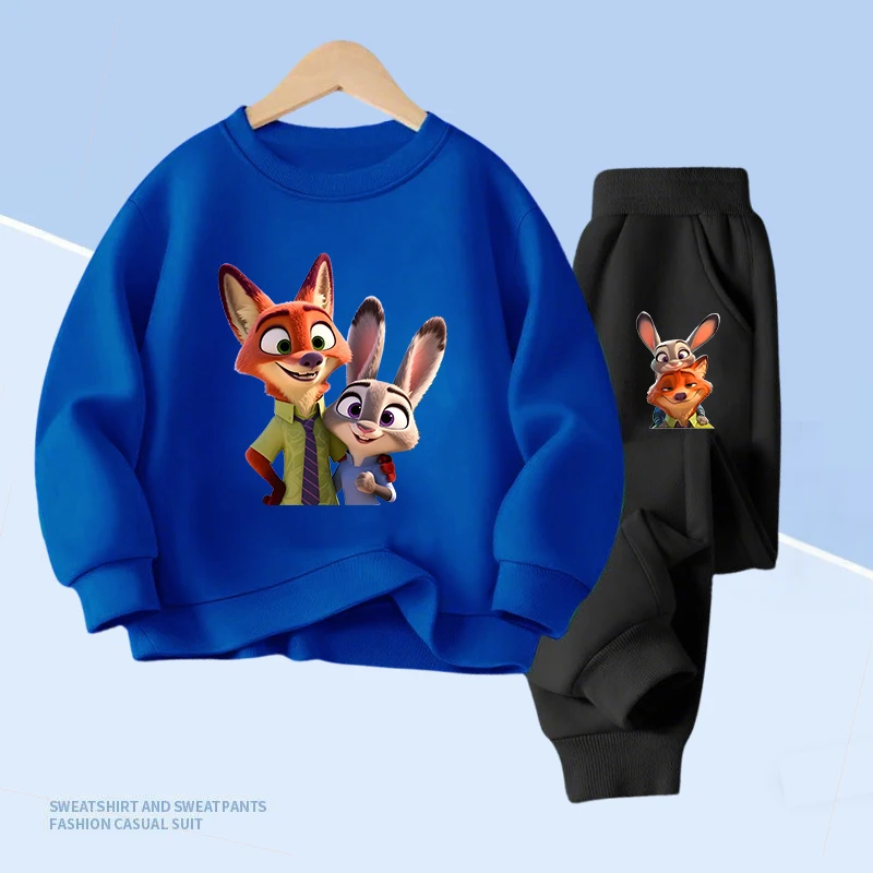 Disney Zootopia Spring Children Clothes Sets Cartoon Boys Pullover Tops and With Pocket Long Pants 2pcs Kids Thin Clothes Set