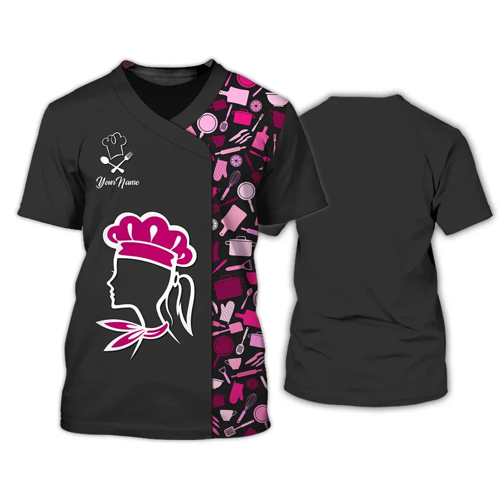Funny Kitchenware 3D Print T Shirt For Men Casual O-neck Short Sleeve Tops Fashion Chef Uniform Customize Name T-Shirts Clothing