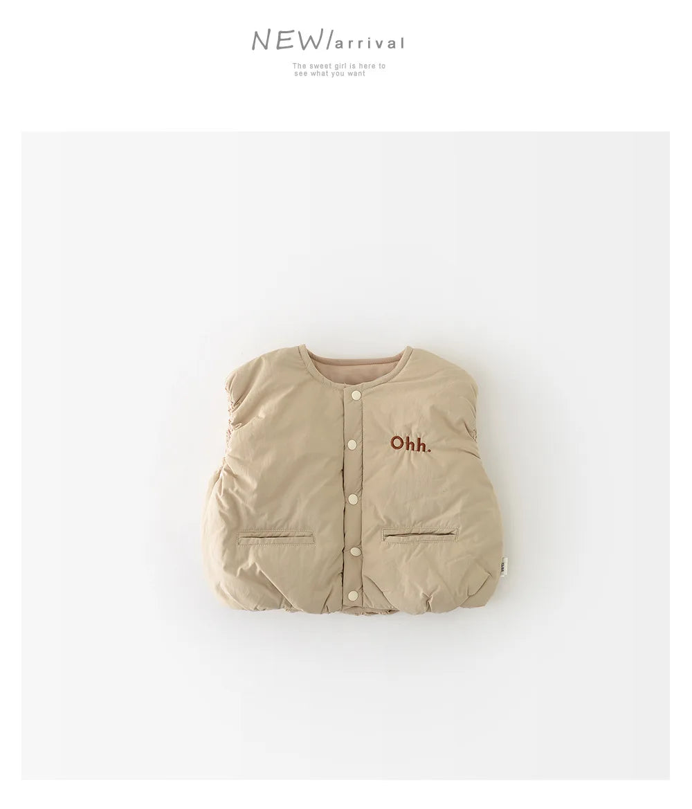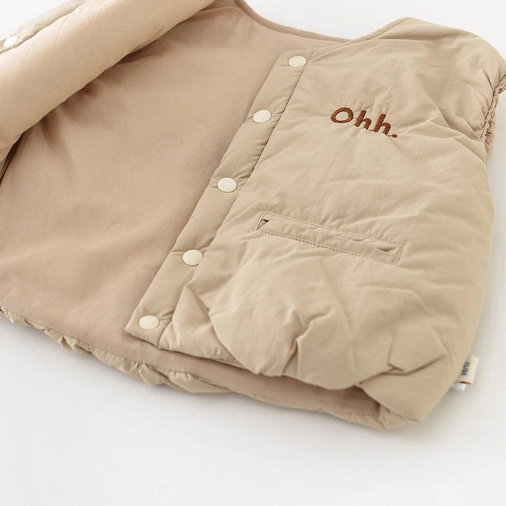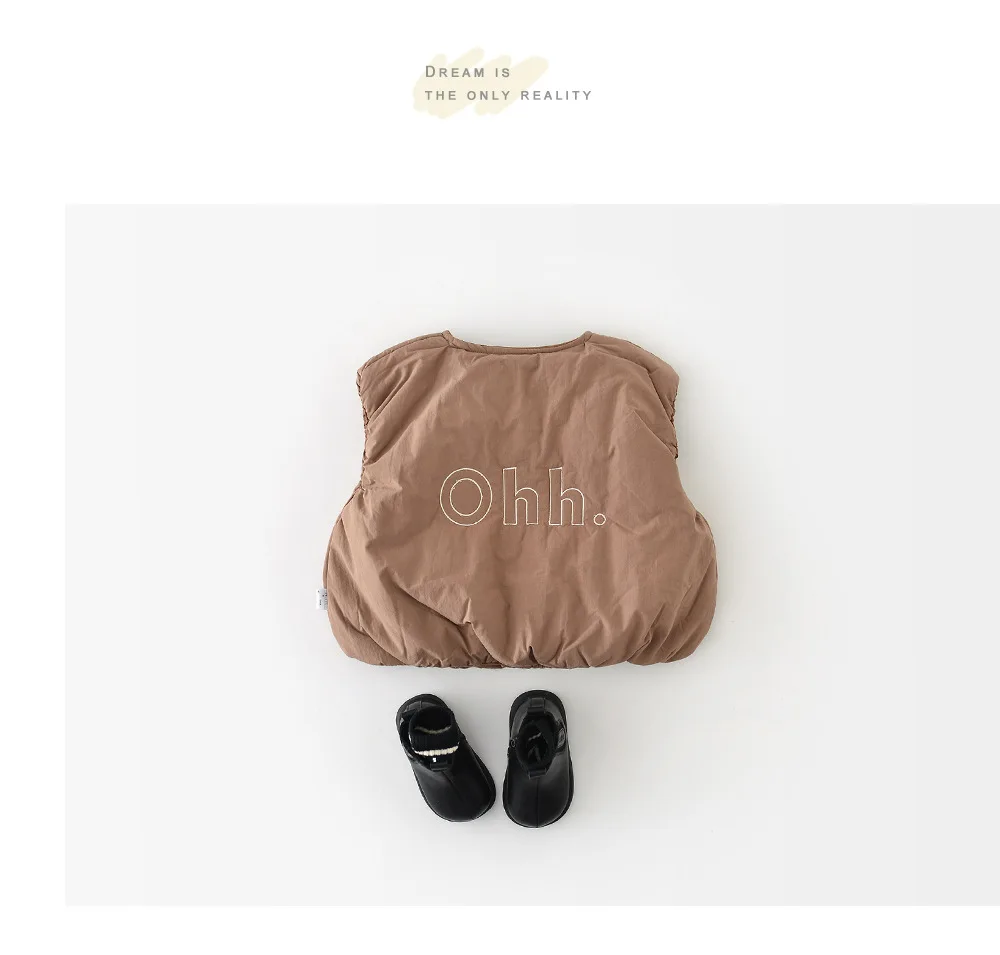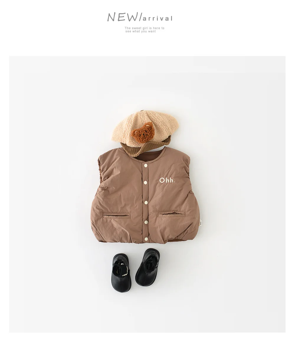 - **Minimalist Letter Print**: Featuring a simple "Ohh." letter print, the vest has a sleek and modern look. It’s perfect for creating a stylish and understated outfit for babies.