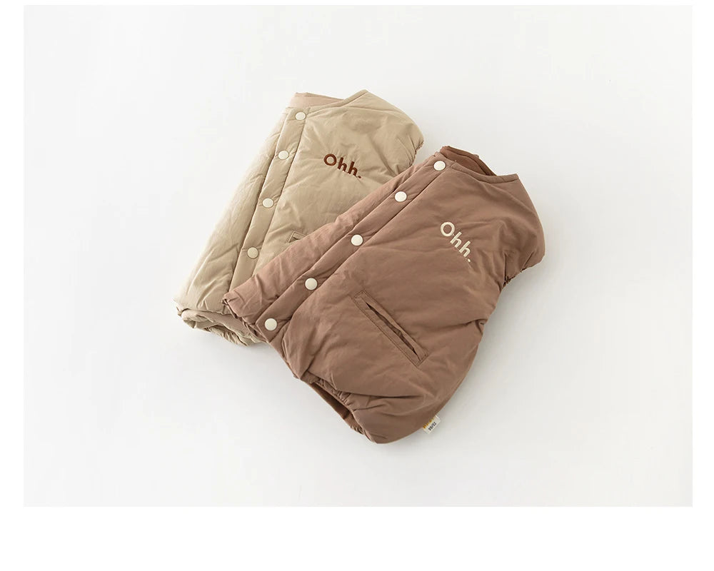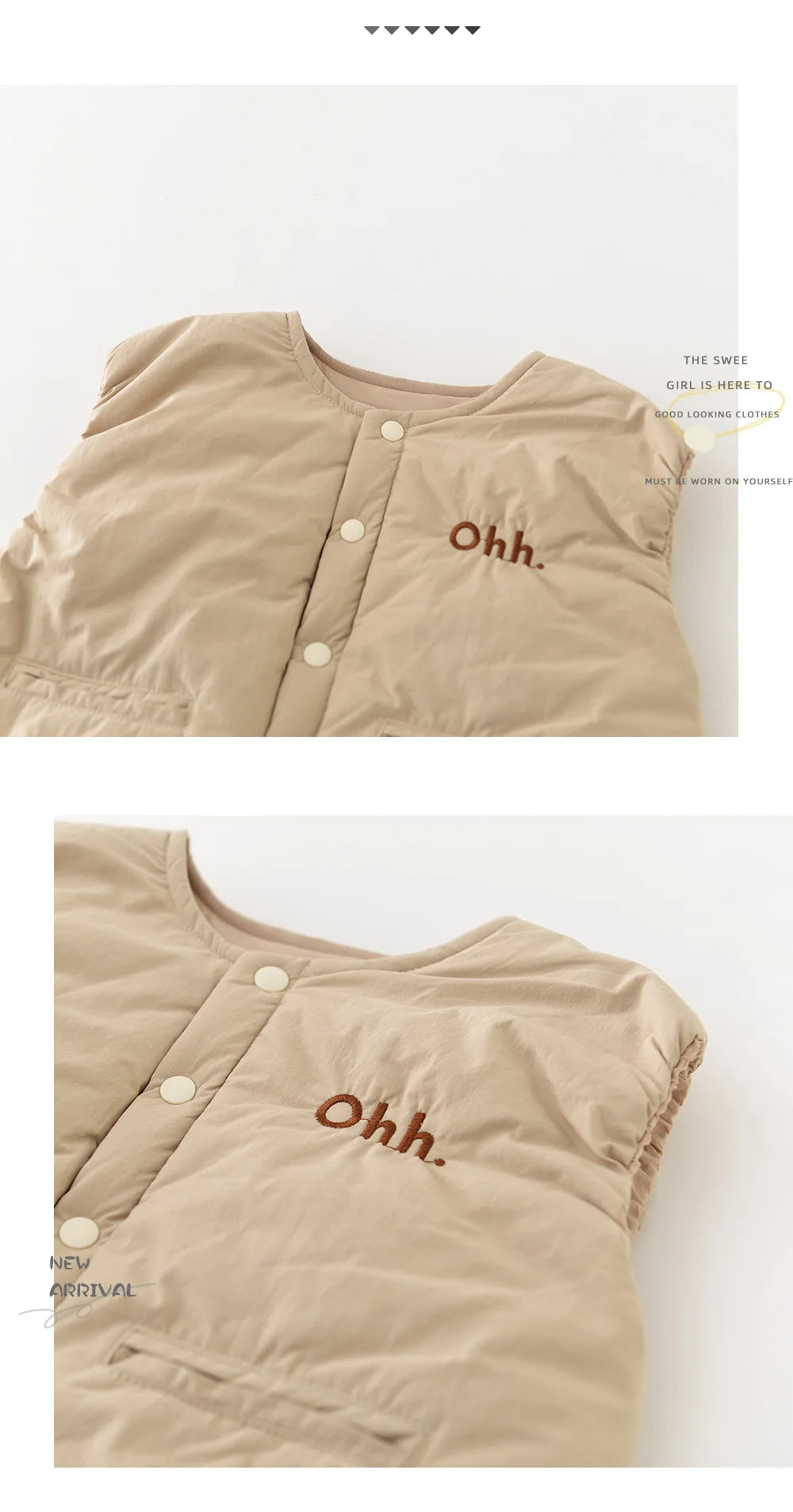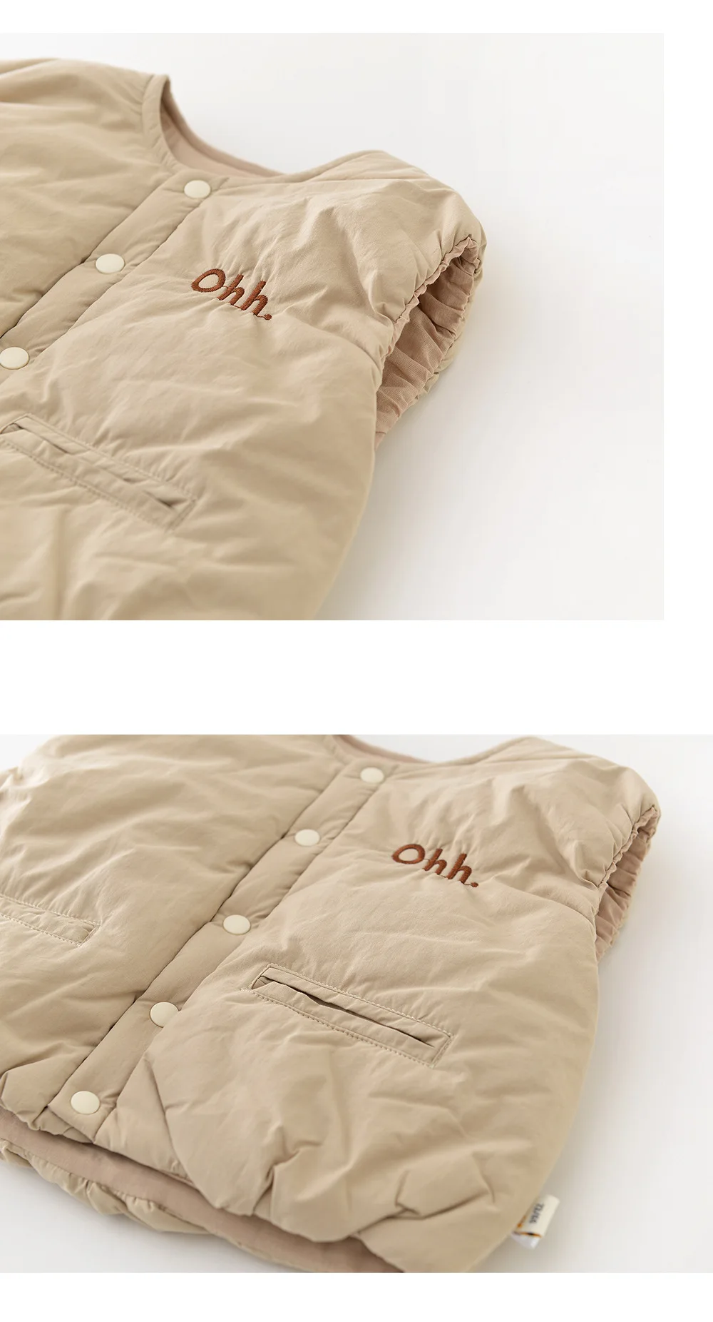 - **Minimalist Letter Print**: Featuring a simple "Ohh." letter print, the vest has a sleek and modern look. It’s perfect for creating a stylish and understated outfit for babies.