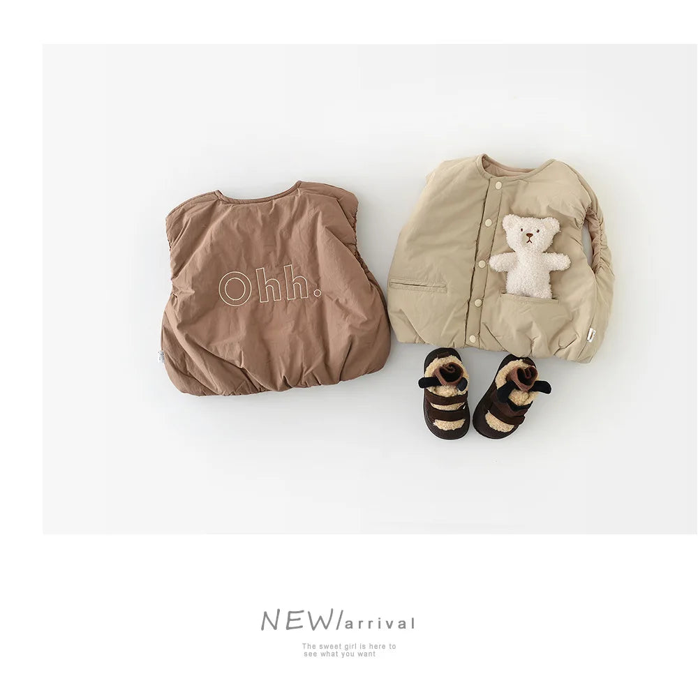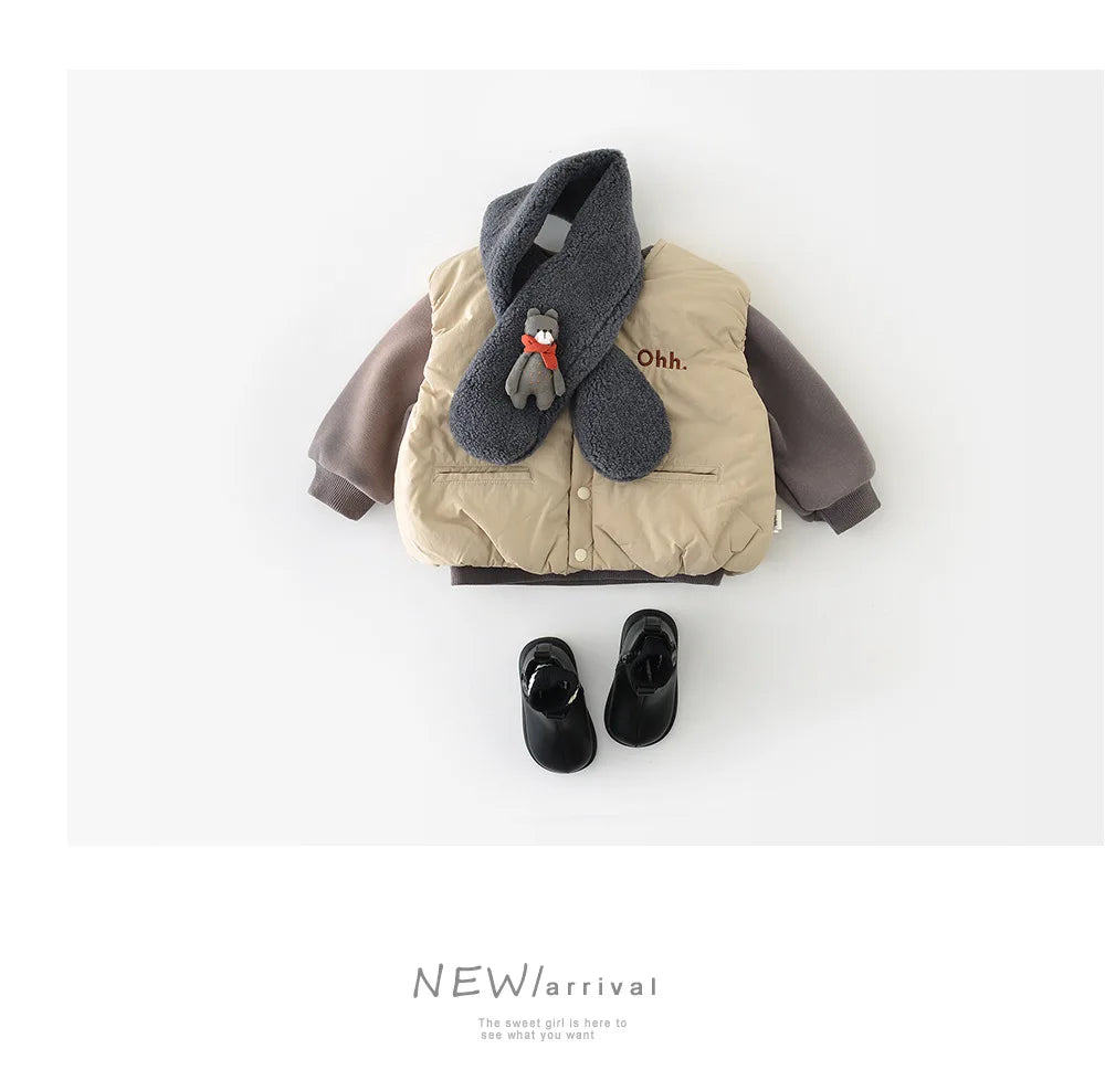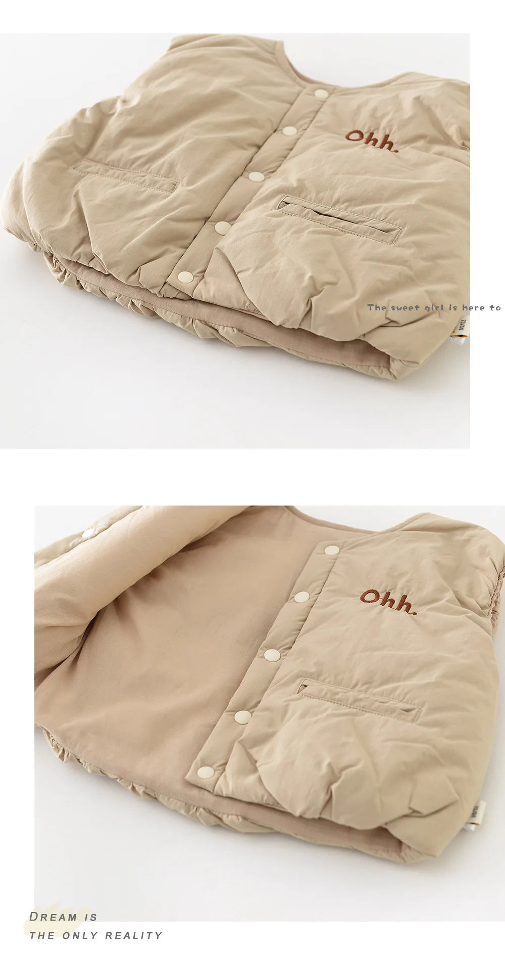 LILIGIRL Winter Baby Vest Thicken Letter Toddler Girls Waistcoat Simple Warm Infant Fleece Padded Coat 6M-3T