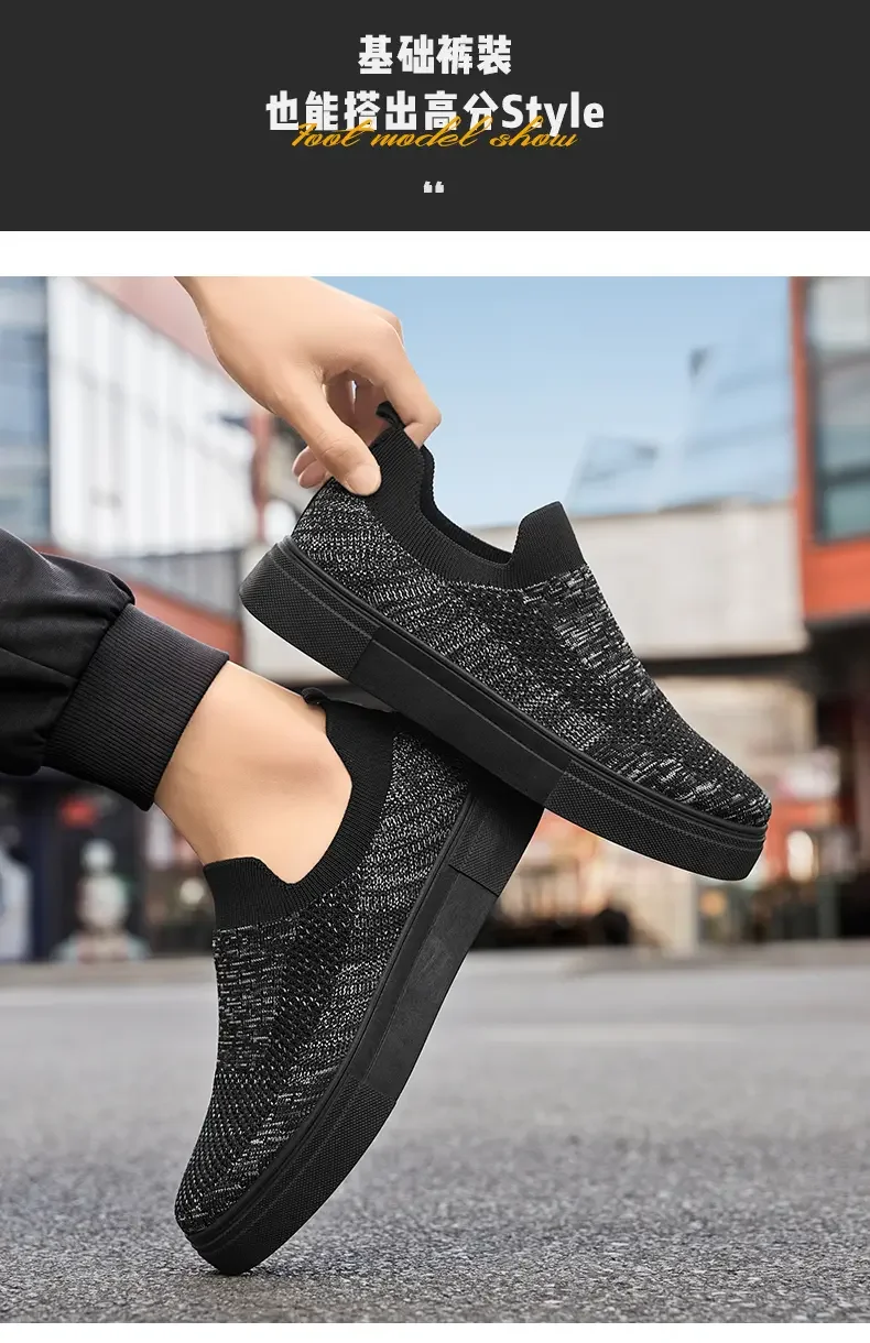 Men's Casual Shoes with Simple Mesh Design Flat Low-top Spring and Summer Shallow-mouthed Wearing Style Versatile Walking Shoes