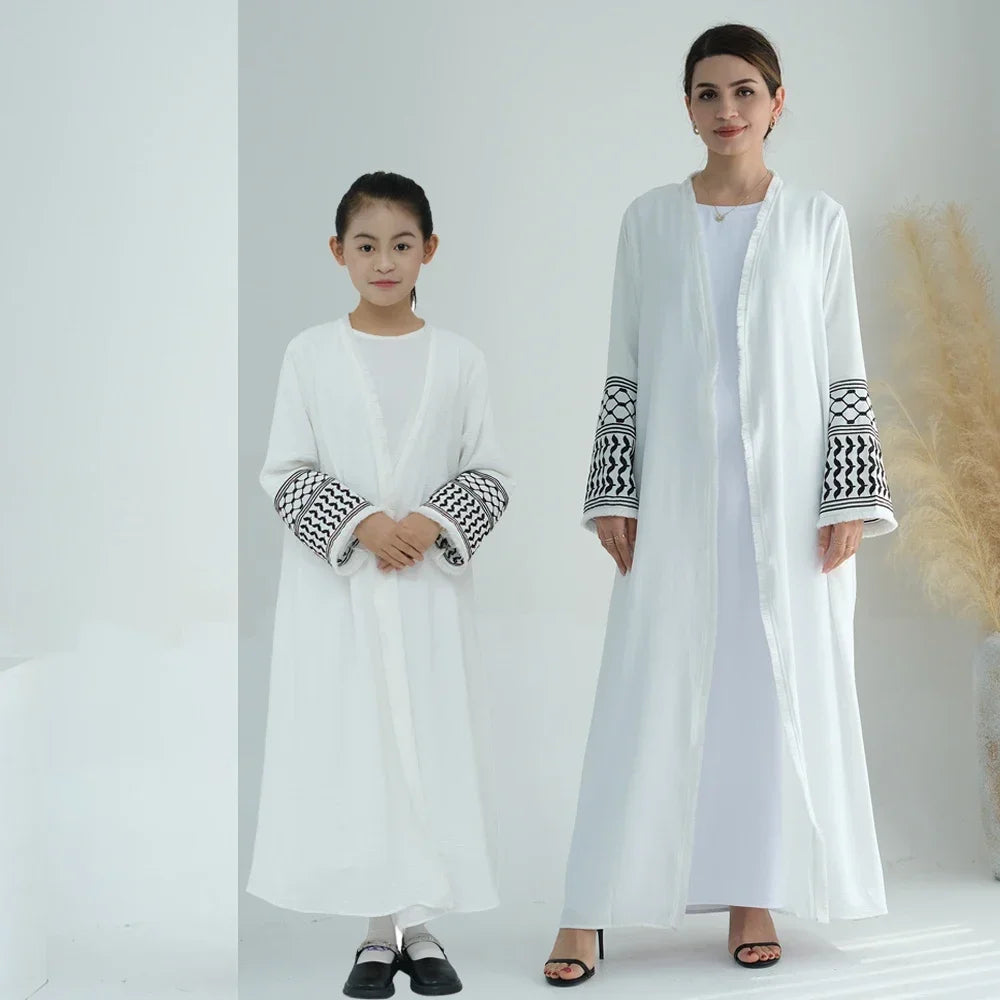 Mother and Daughter Abayas Dubai Muslim Women Kids Girls Maxi Dress Eid Djellaba Jalabiya Turkey Kimono Cardigan Islamic Robe