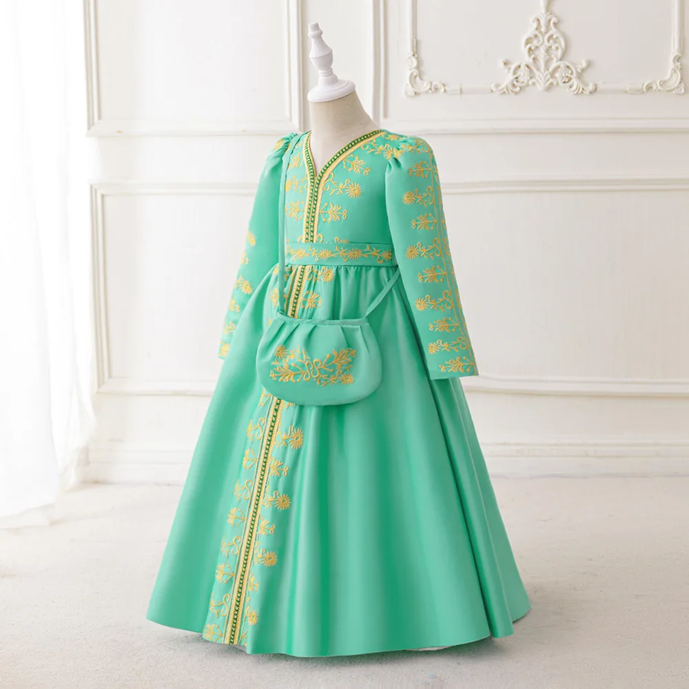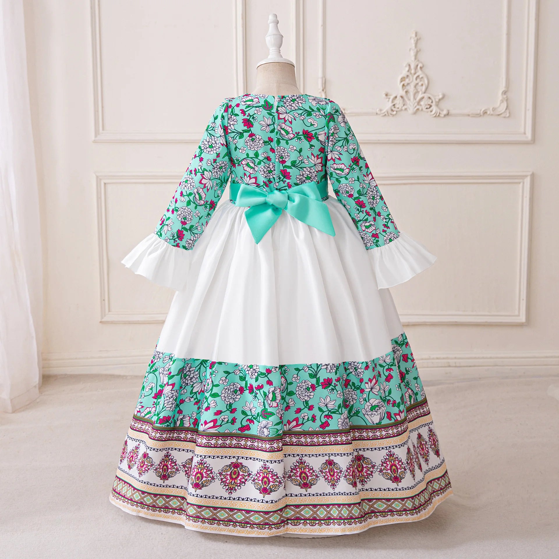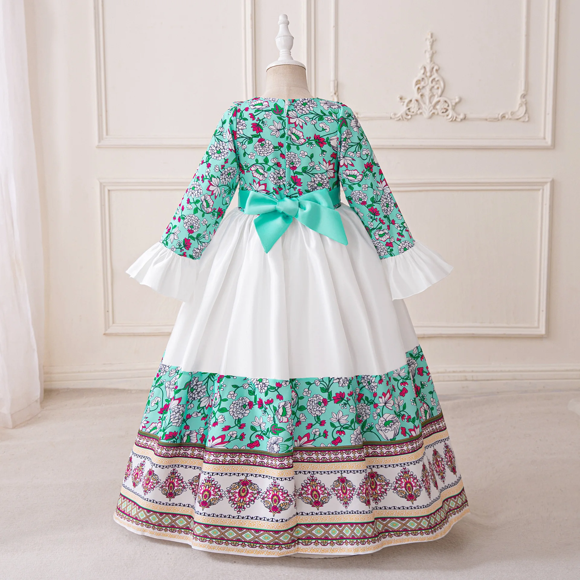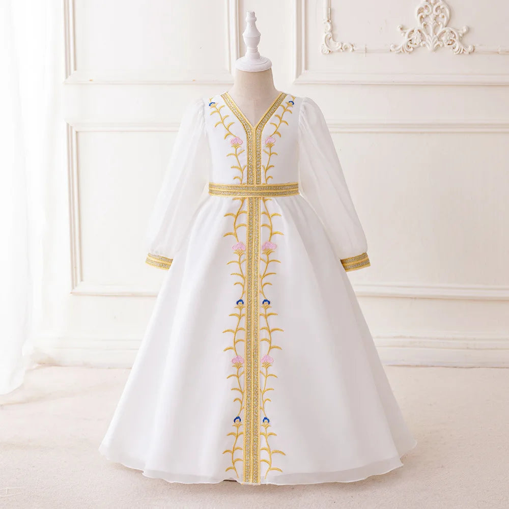 Muslim Ramadan Prayer Gowns Party Girls Dress Long Sleeve Robe Arabic Dubai Abaya Girls Dresses Eid Child Holiday Prom Costumes