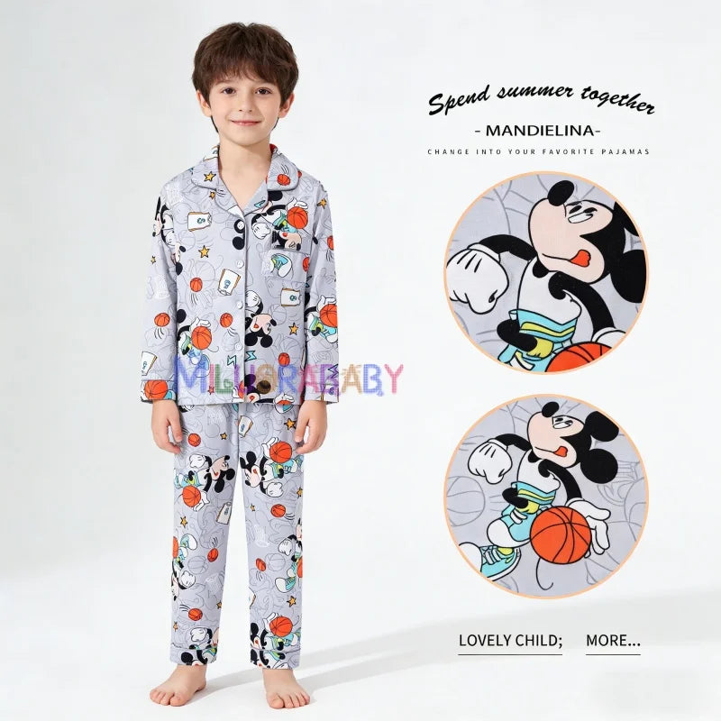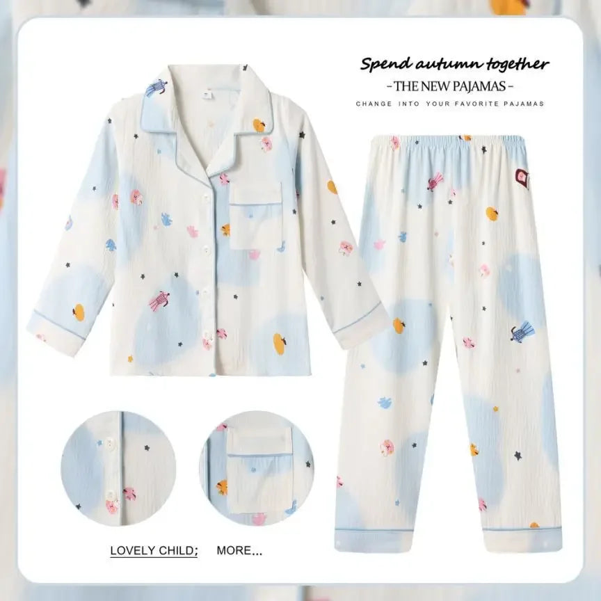New Children's Capybara Pajamas Set for Spring Autumn Lapel Long Sleeves Girls Boys Loungewear Set For Older Kids Clothes Set