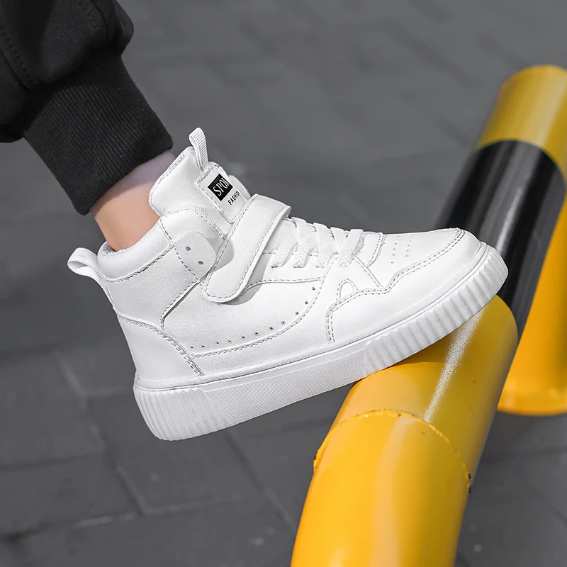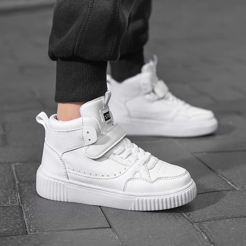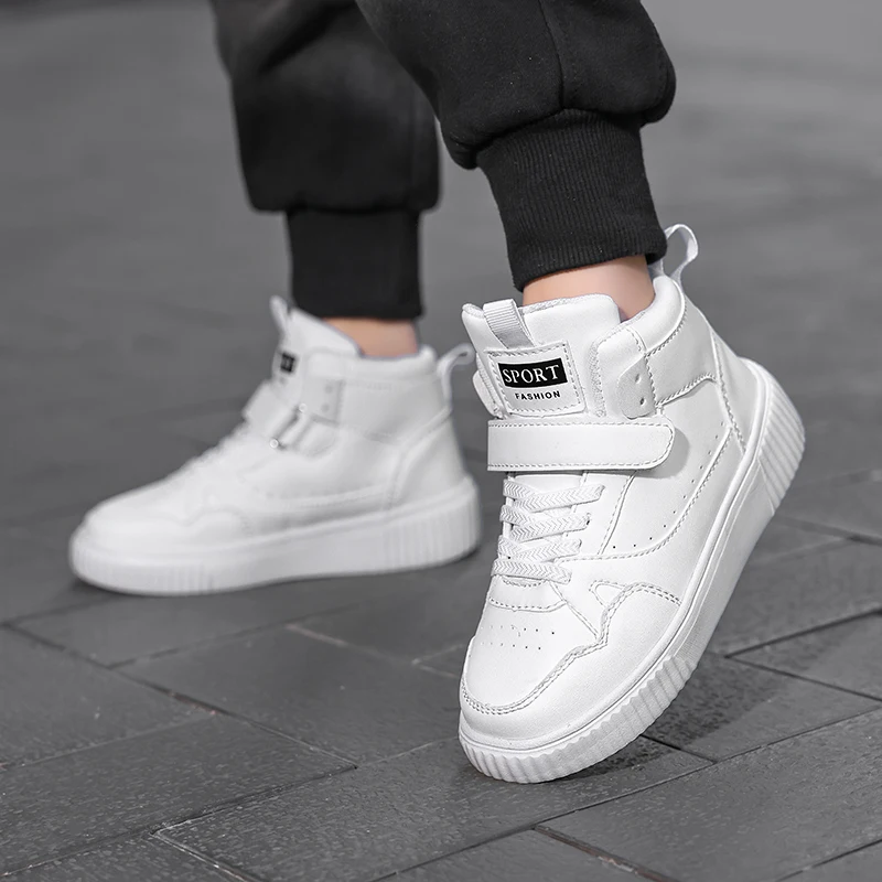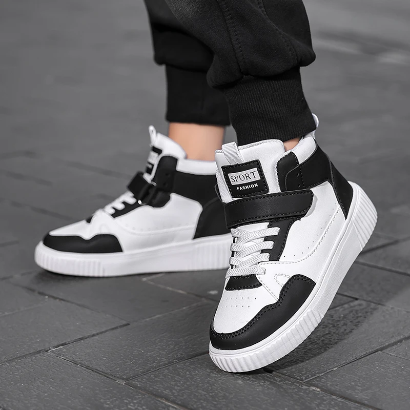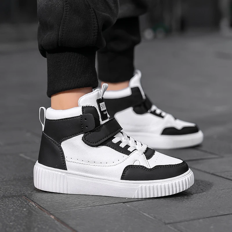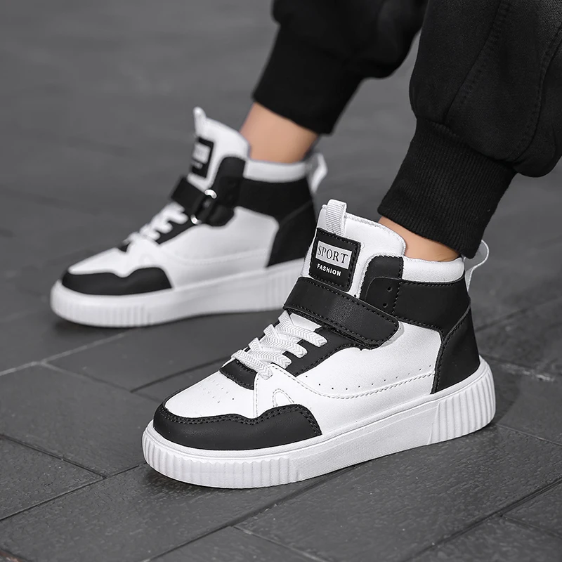 New High Top Childrens Boy Sneakers Outdoor Running Basketball Kids Sports Shoes Non-slip Luxury Pu Leather Boys Sports Shoes