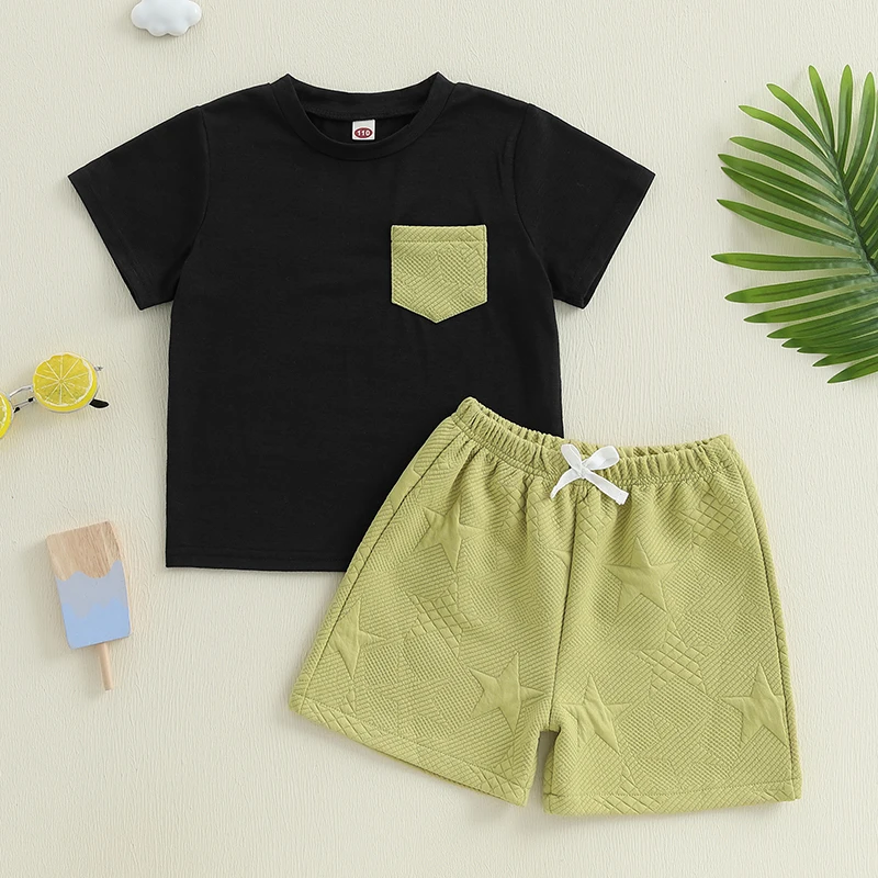 Kids Boys Shorts Set, Short Sleeve T-shirt with Elastic Waist Stars Shorts Toddler Set Summer Outfit