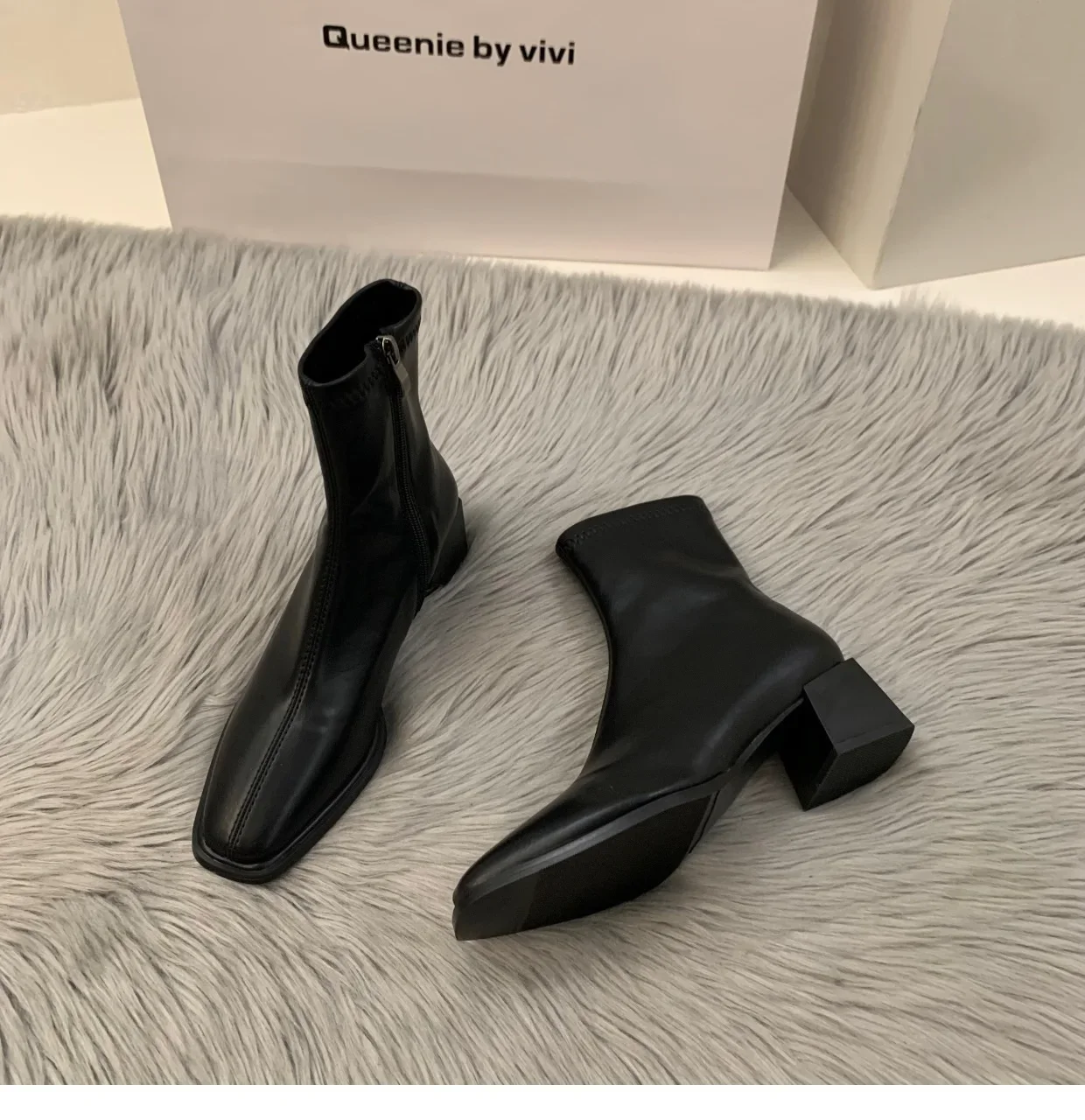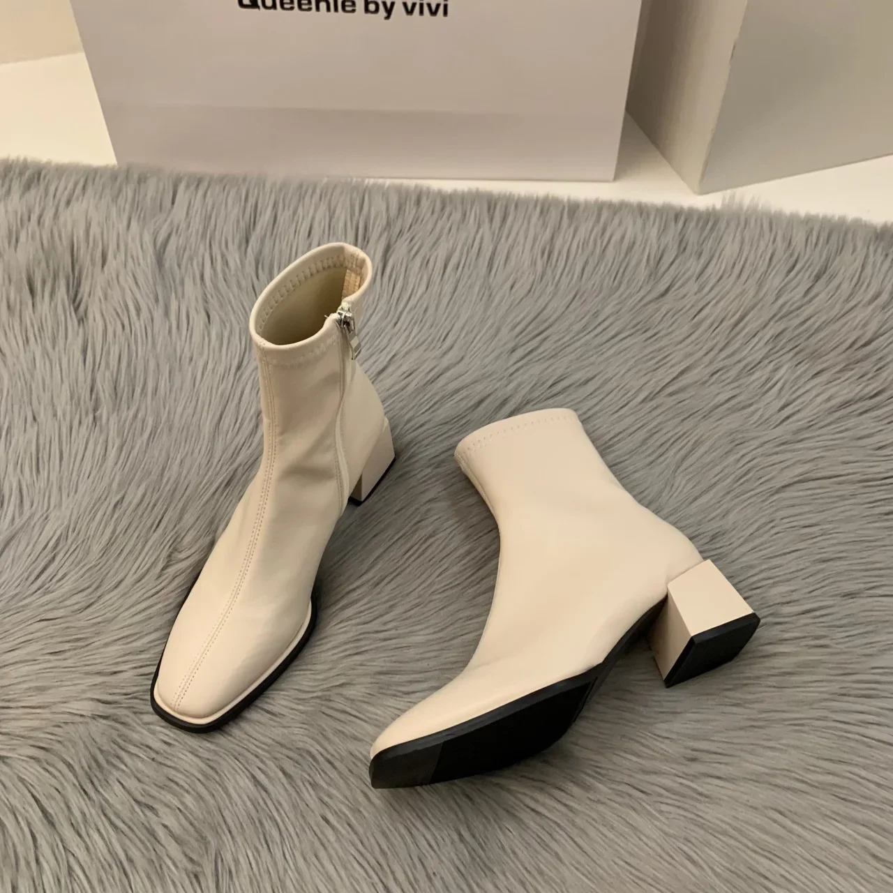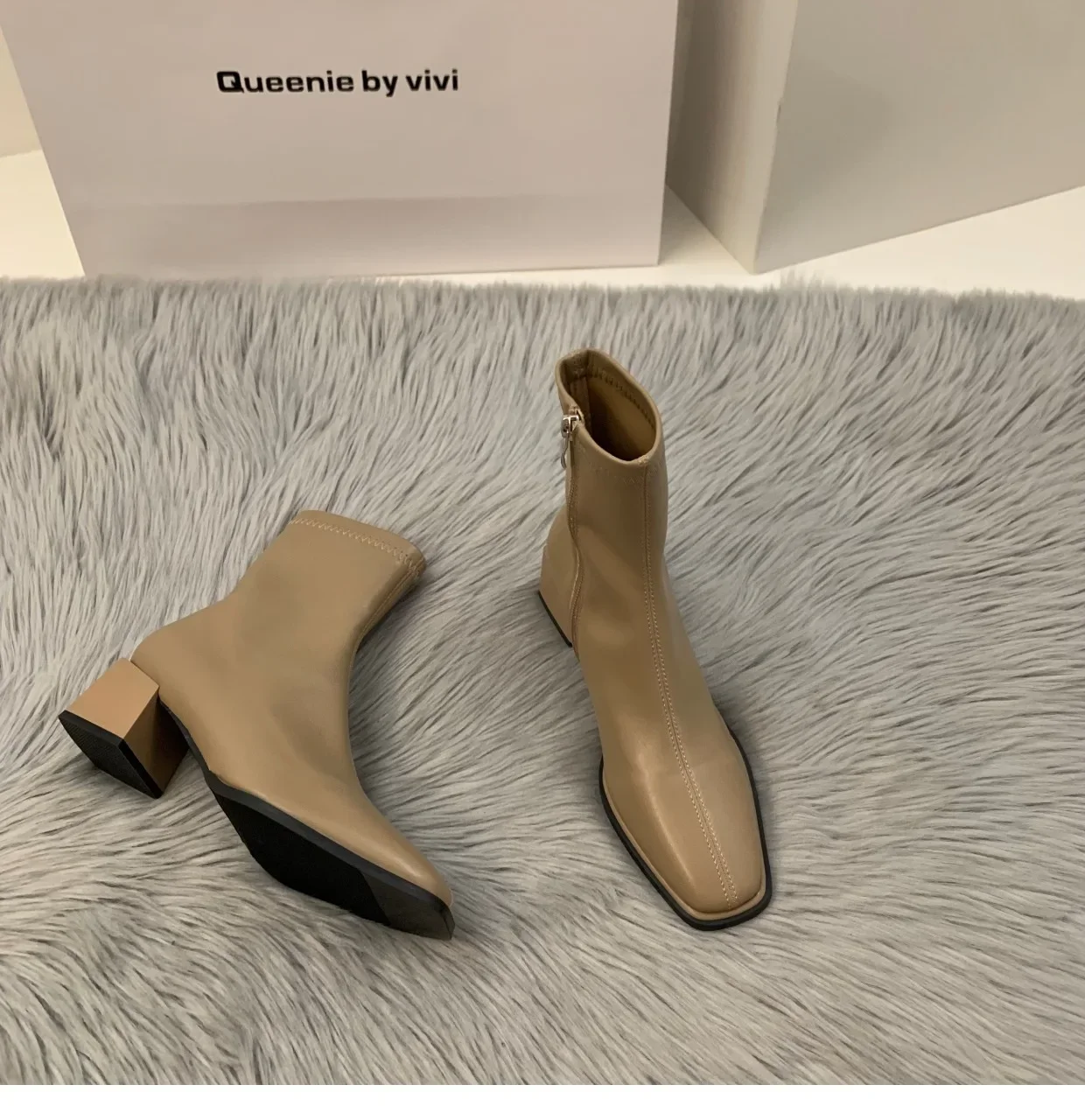 Short boots for women 2025 new spring and autumn single boots round toe raised waterproof platform bare boots for women