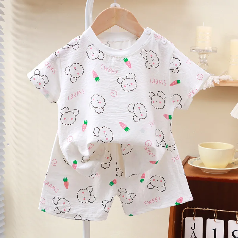 Summer Kids Suit Clothes for Girls Cartoon Short Sleeve T-shirt Tops+shorts 2024 New Children's Clothing Baby Boys Set