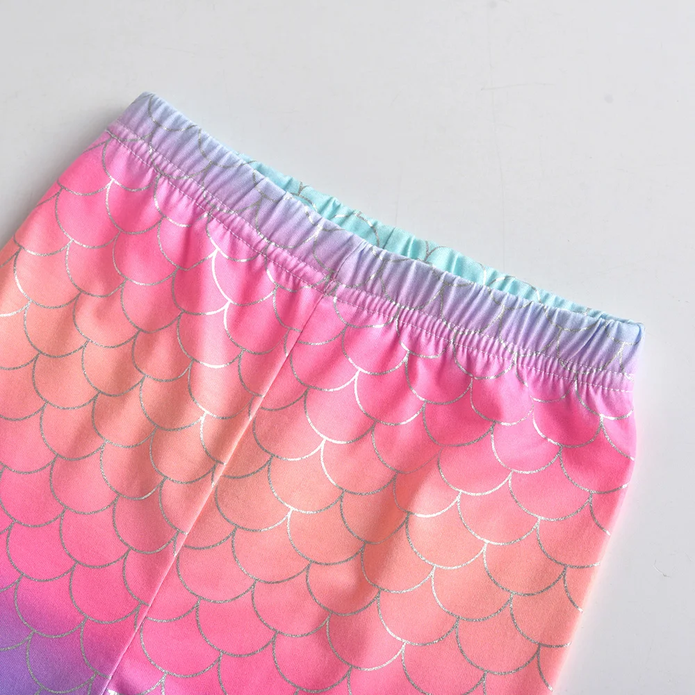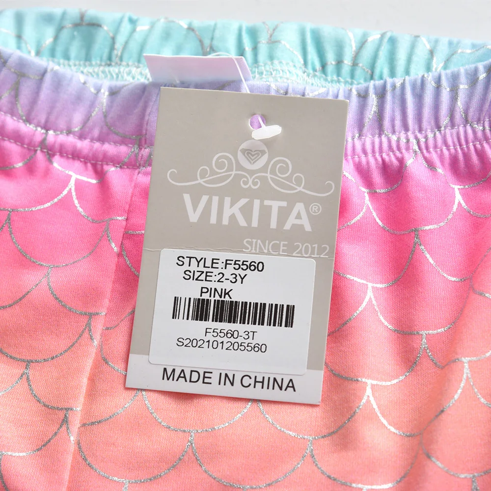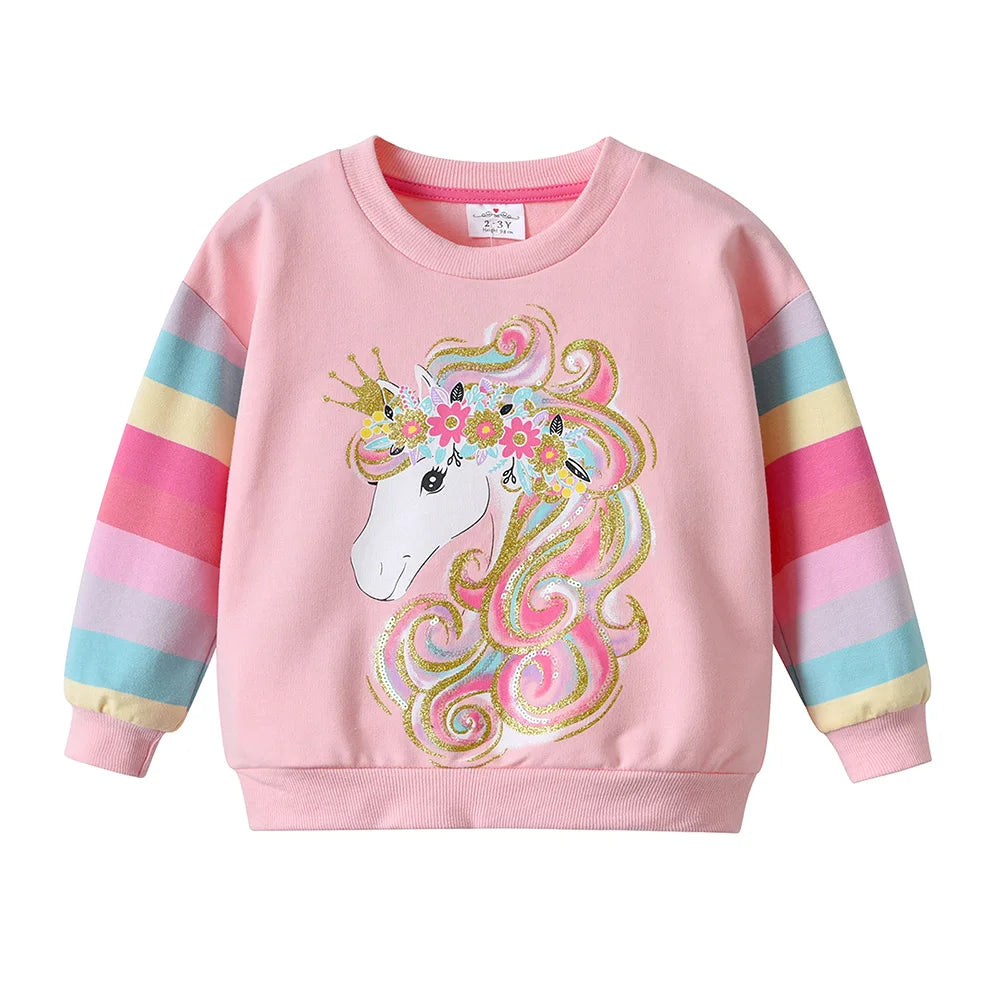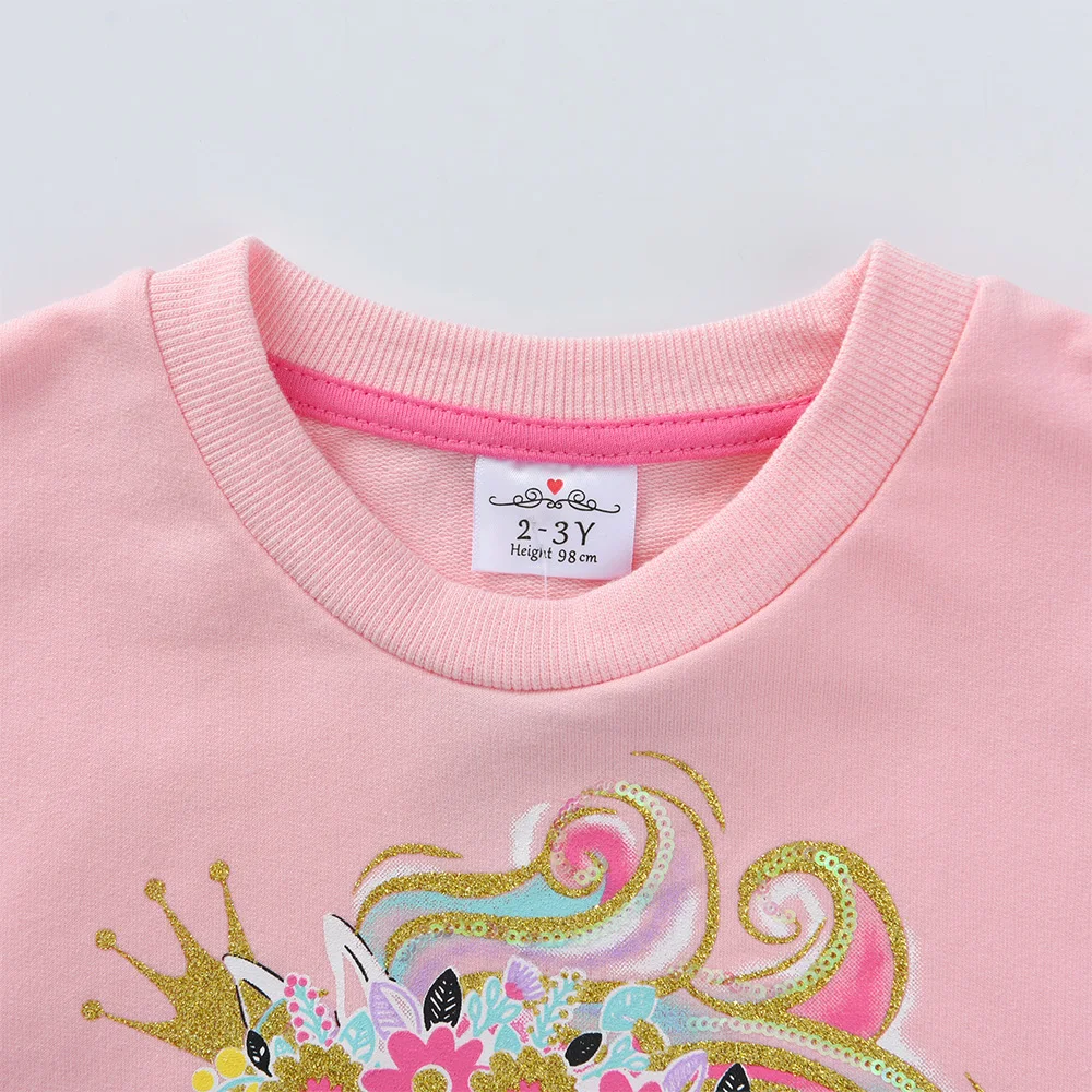 VIKITA Girls Cartoon Pink Outfits Kids Rainbow Striped Cotton Sweatshirt and Colorful Leggings Children Clothing 2 Pcs Sets