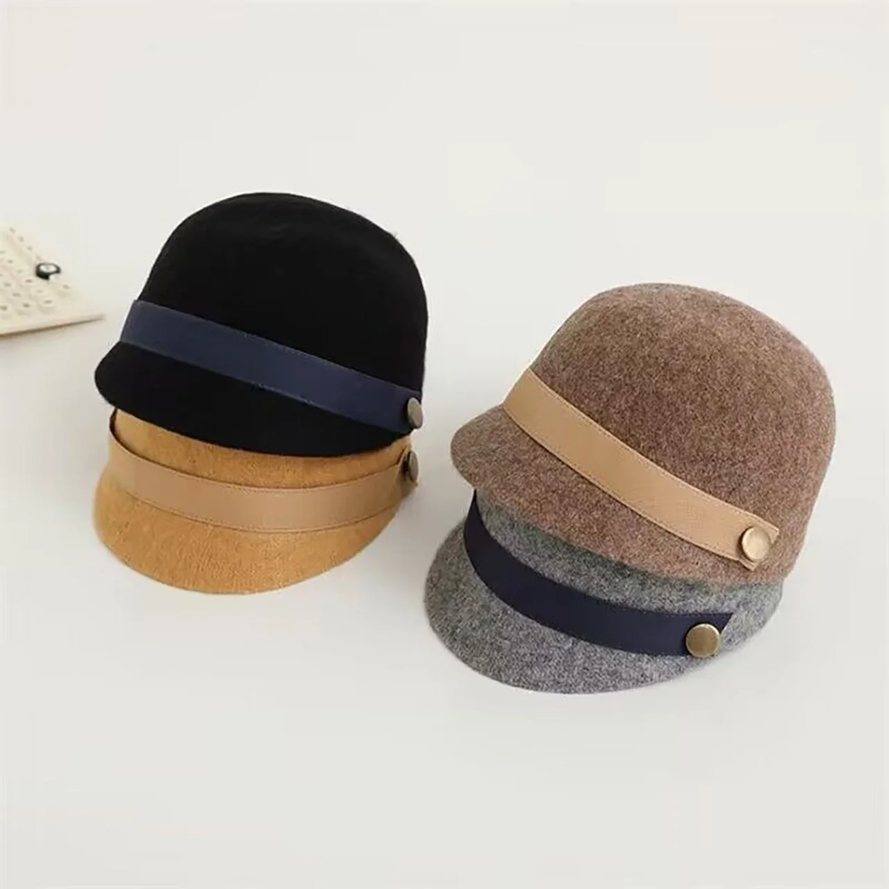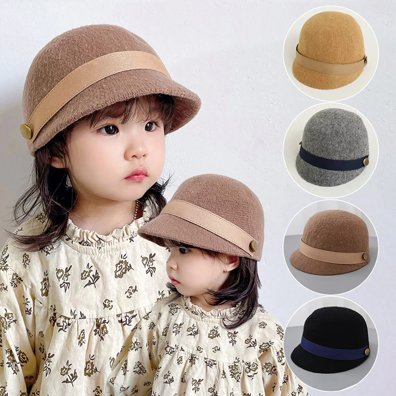 Winter Warm Baby Equestrian Hat Vintage Baby Boy Girl Wool Caps Cute Toddler Short Brim Duck Tongue Cap