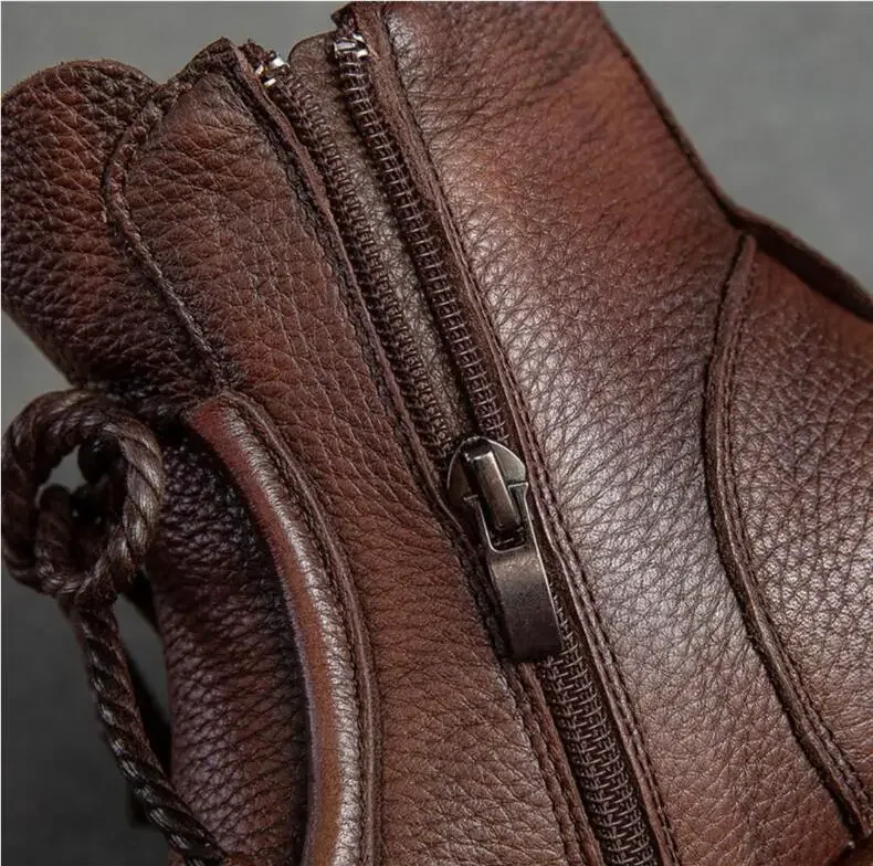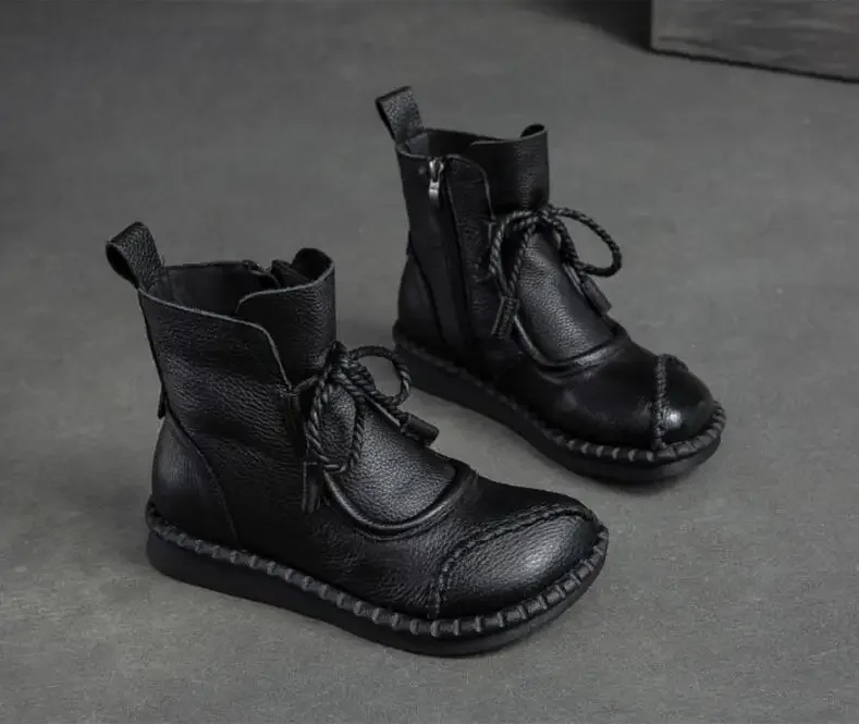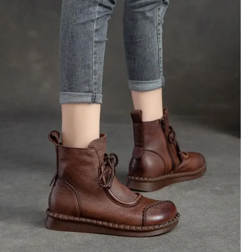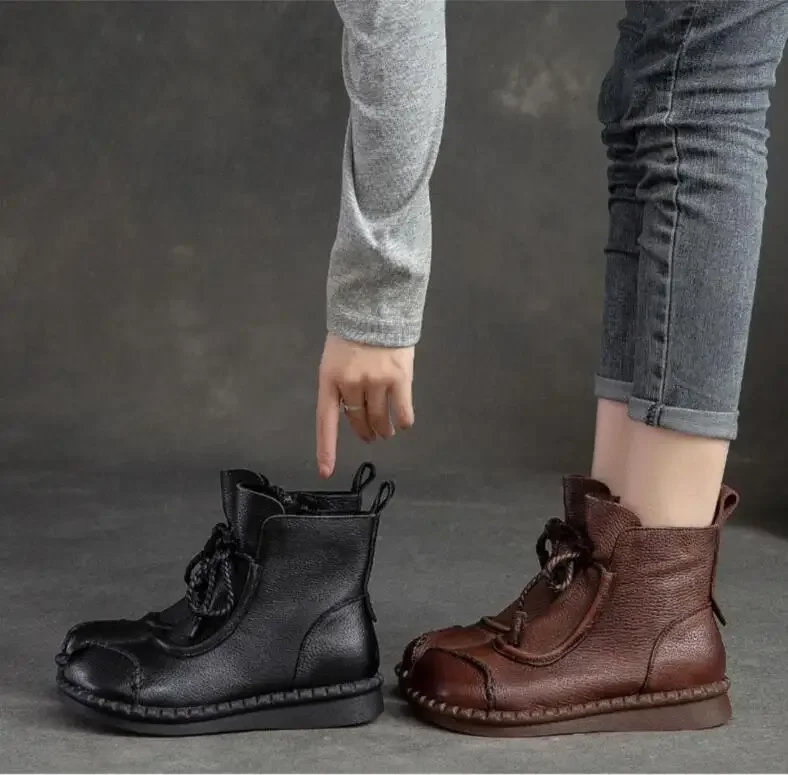 Women's Boots Spring Autumn New Retro Non-Slip Soft Bottom Flat Shoes Comfortable Soft Cowhide Ankle Boots