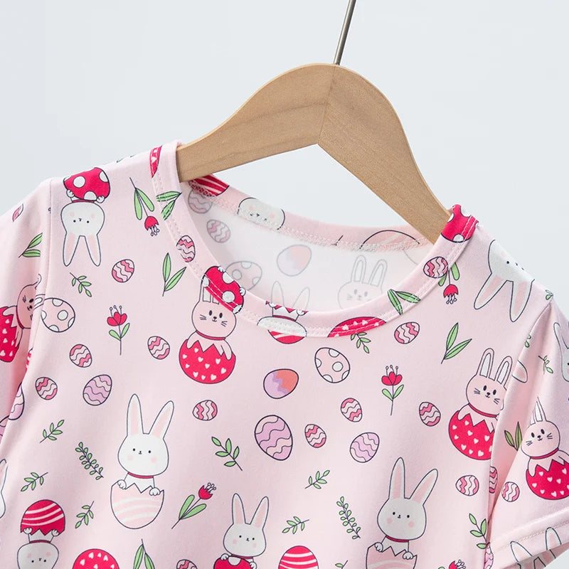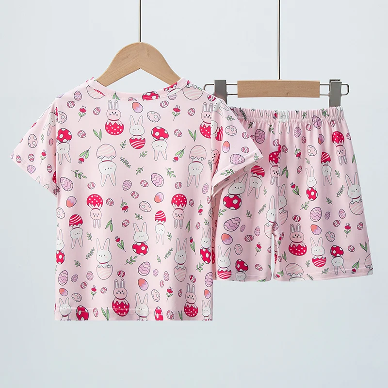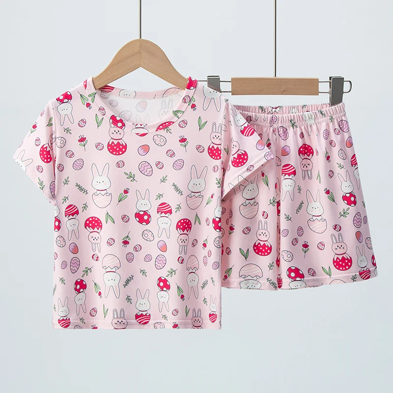 2-piece Summer Children's Shorts Short Sleeve Suit Girl Sweet And Lovely Pink Rabbit Coat Boy Handsome Bear Joker Home Clothes