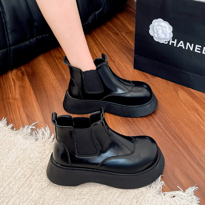 2025 Autumn Winter New Women Fashion Boots British Style Soft Bottom Anti-slippery Versatile Chic Catwalk Versatile Leather Shoe
