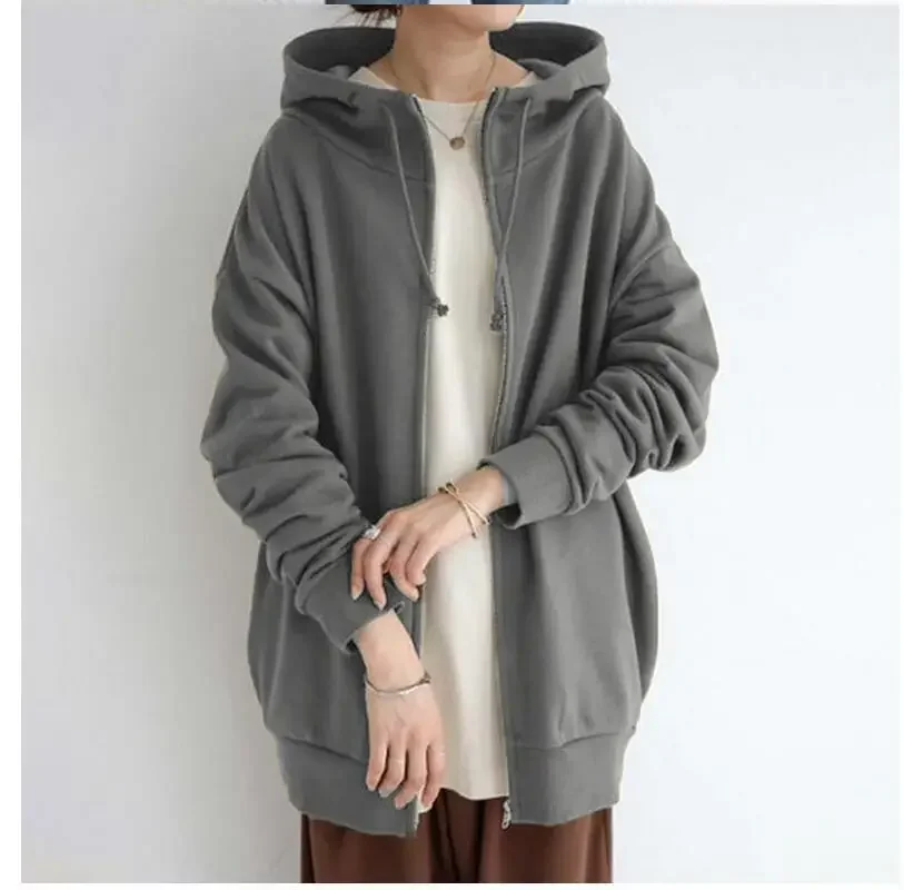 2025 Autumn Women's Hoodie Black Long Sleeve Lace Up Zippers Pockets Plush Hoodies Female Winter Trendy Casual Ladies Clothes