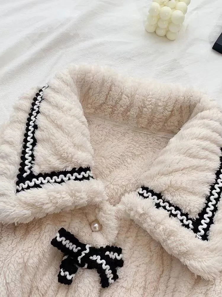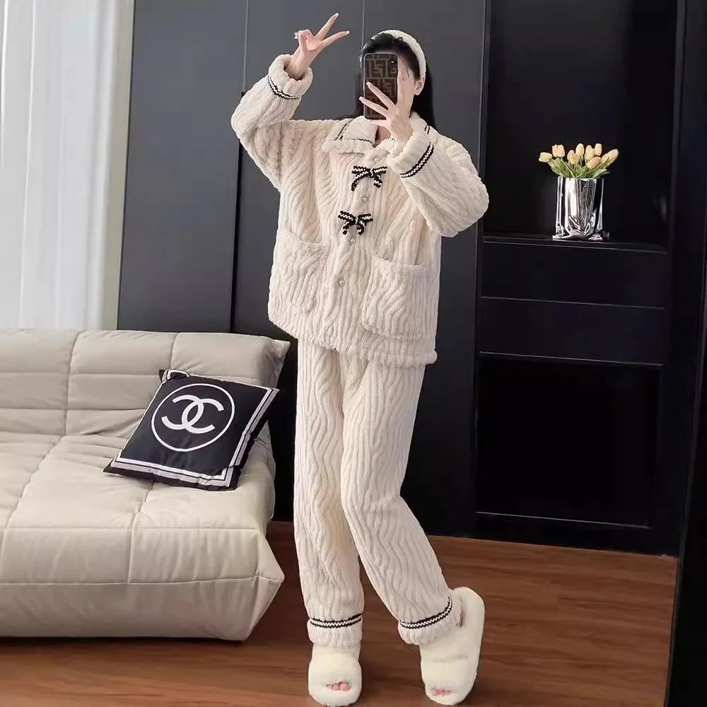 2025 Coral Fleece Women's Sleepwear Thickened Flocking Home Clothes Warmth High Sensation Long Sleeve Pants Set Home Leisure