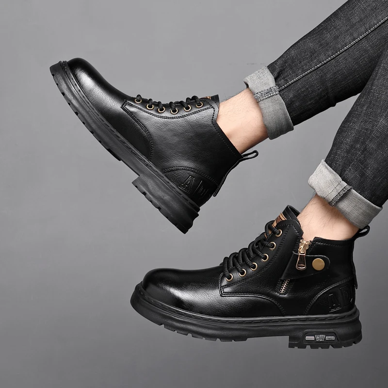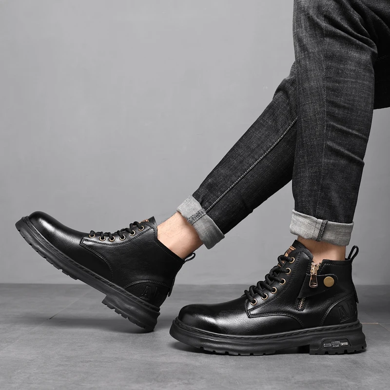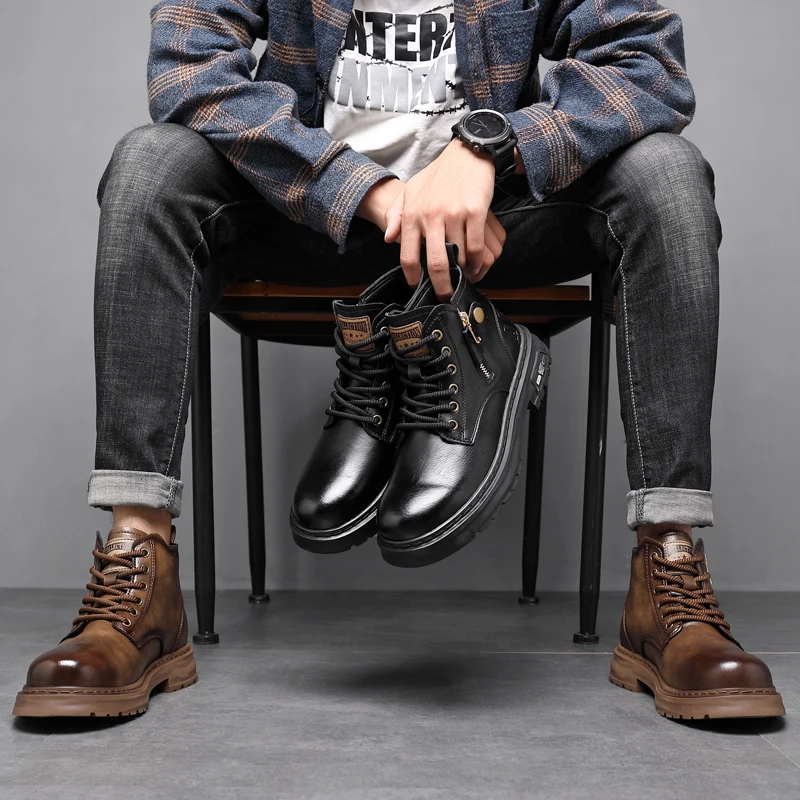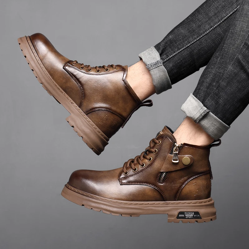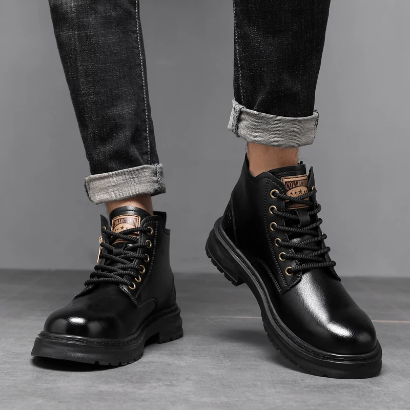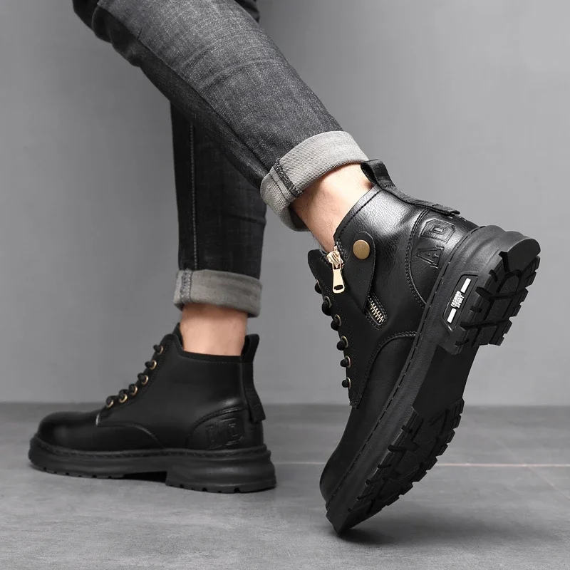2025 New British Style Ankle Boots Men Outdoor Shoes Cargo Wear Casual High Quality Leather Boots Men's Non-slip Motorized Boots