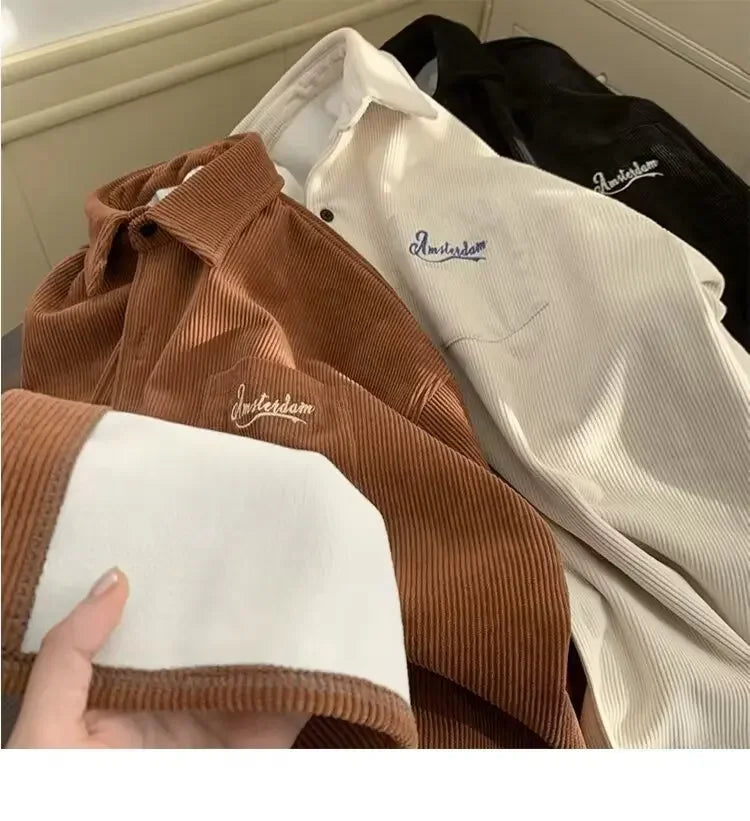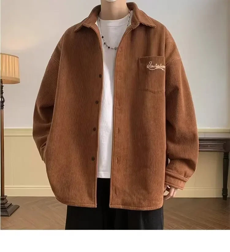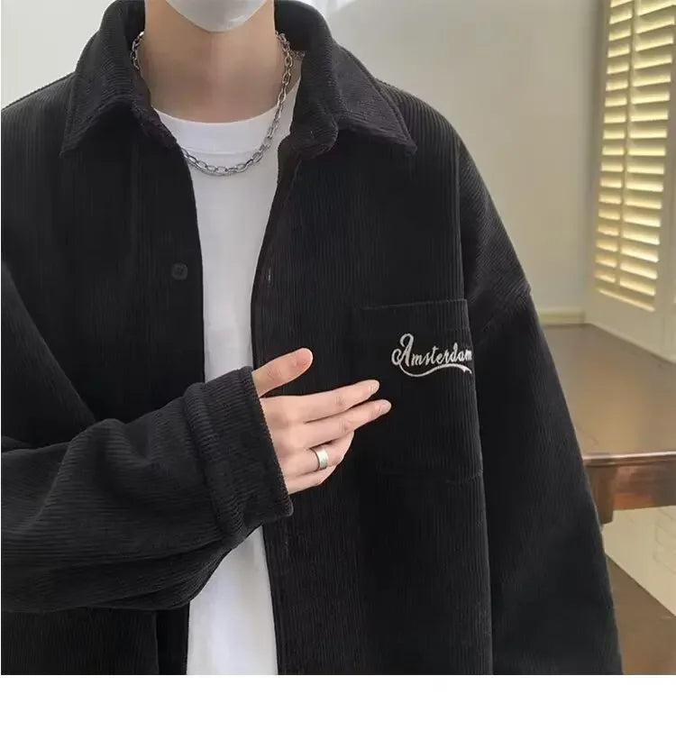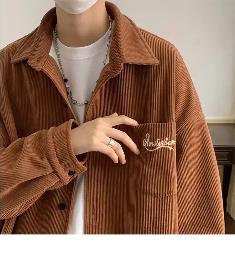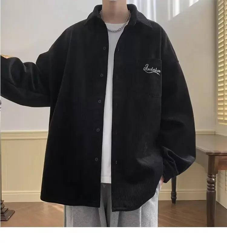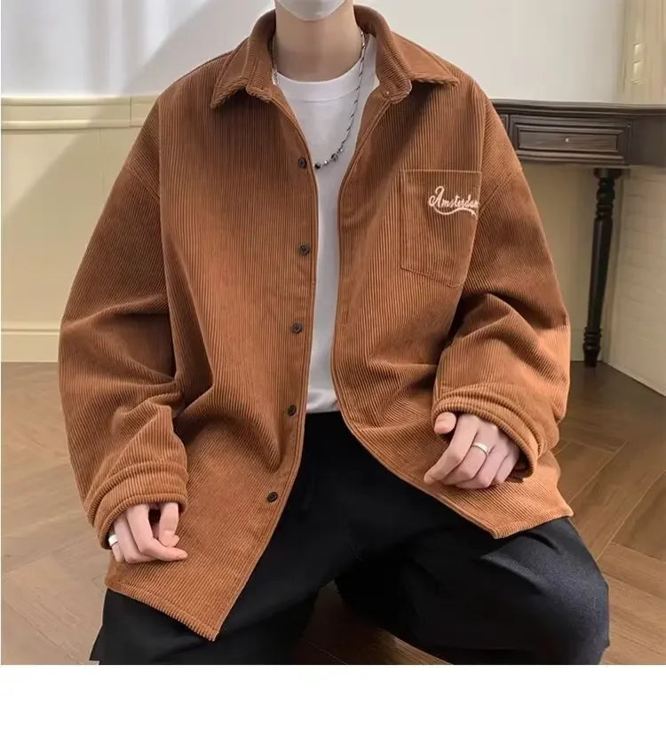 2025 New Retro Lapel Loose Long Sleeve Casual Shirt Jacket Men's Korean Style Trendy Spring Autumn Wear Comfortable Outerwear
