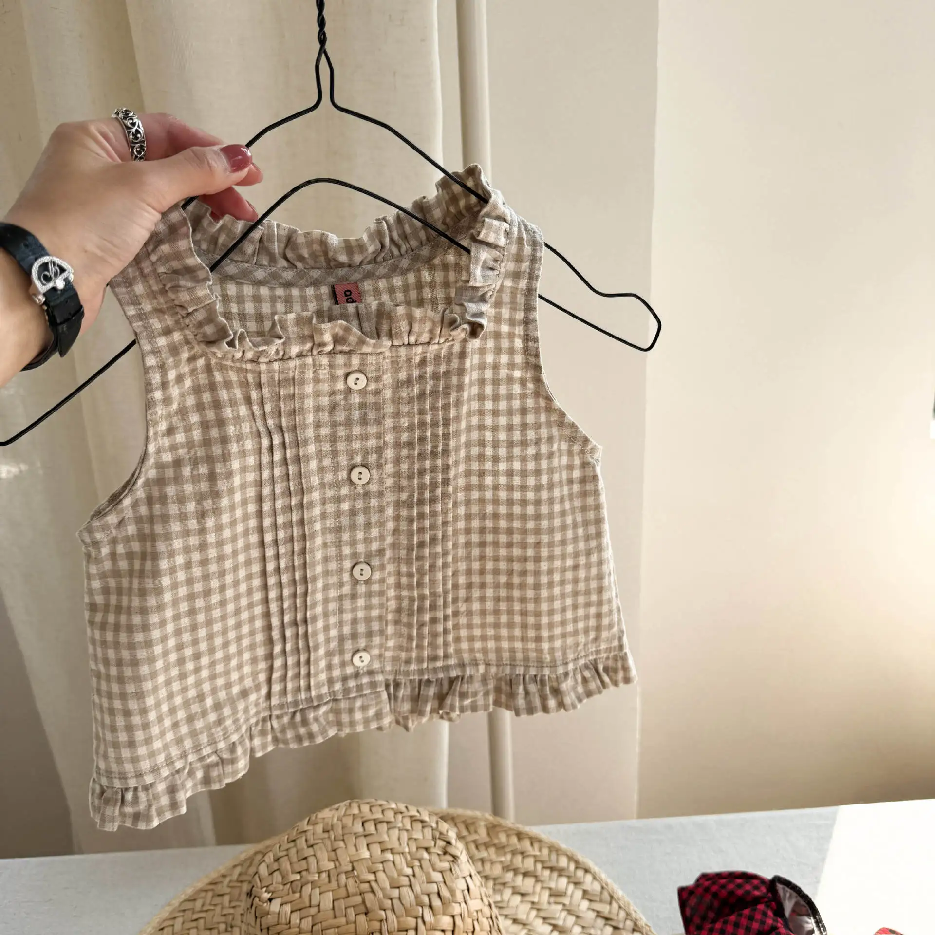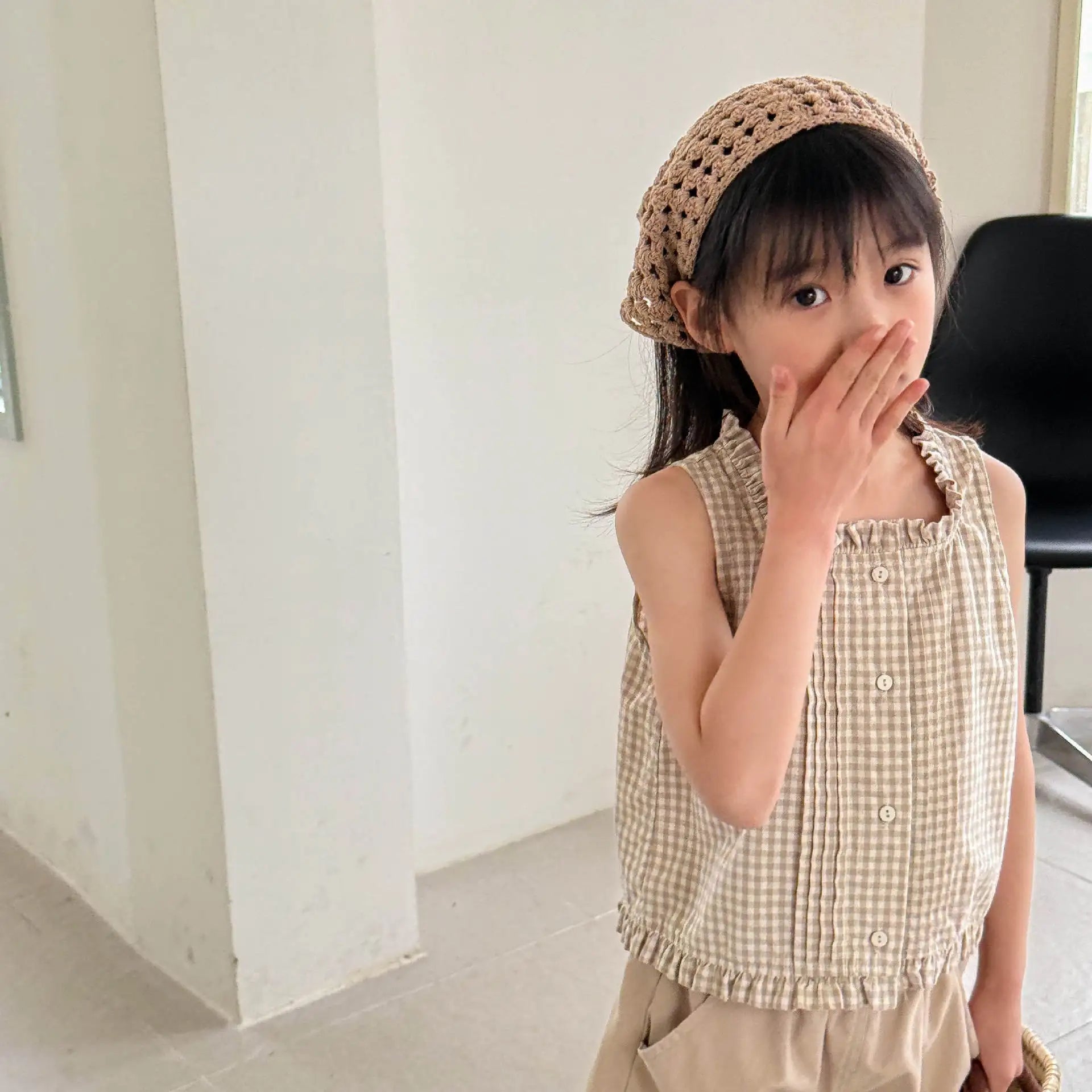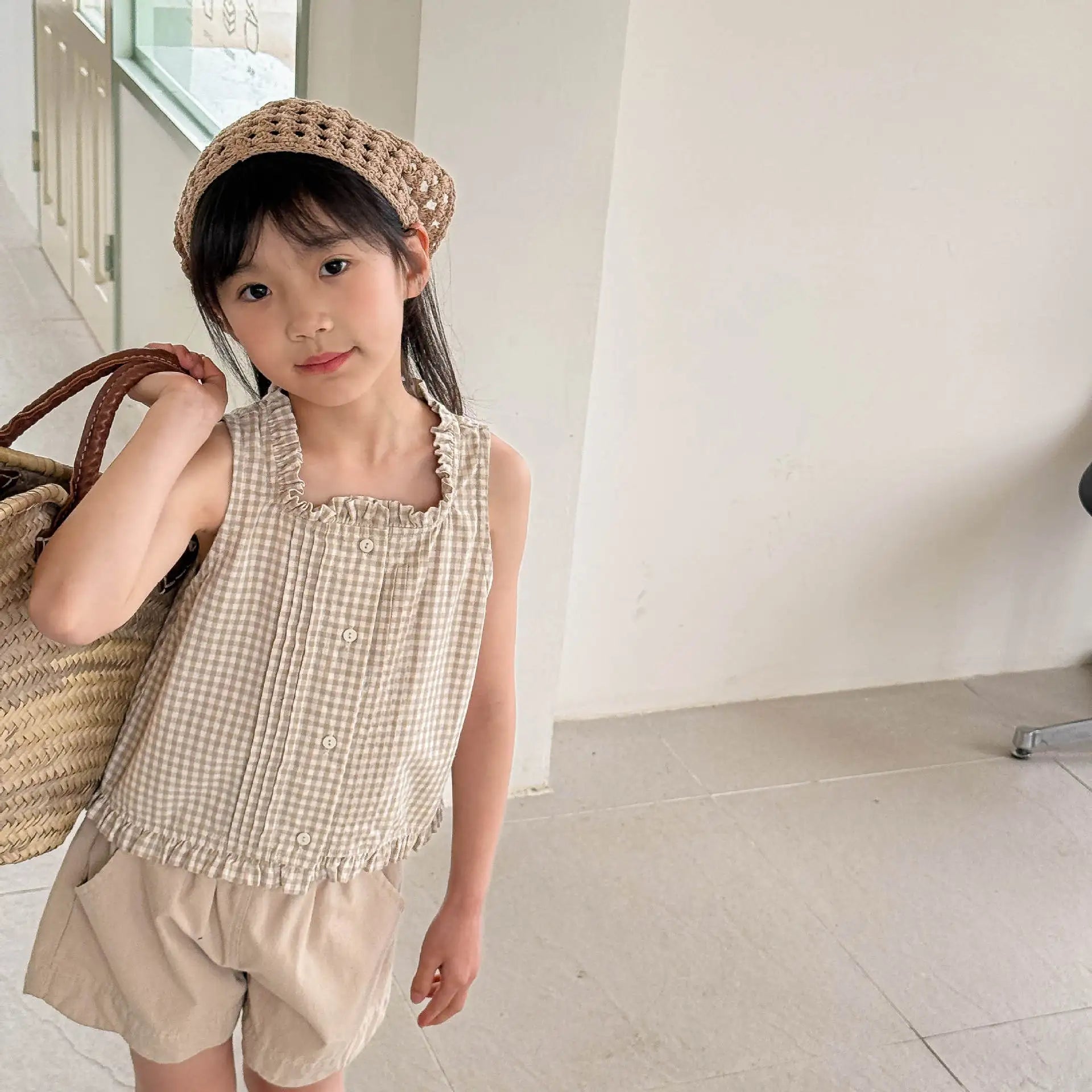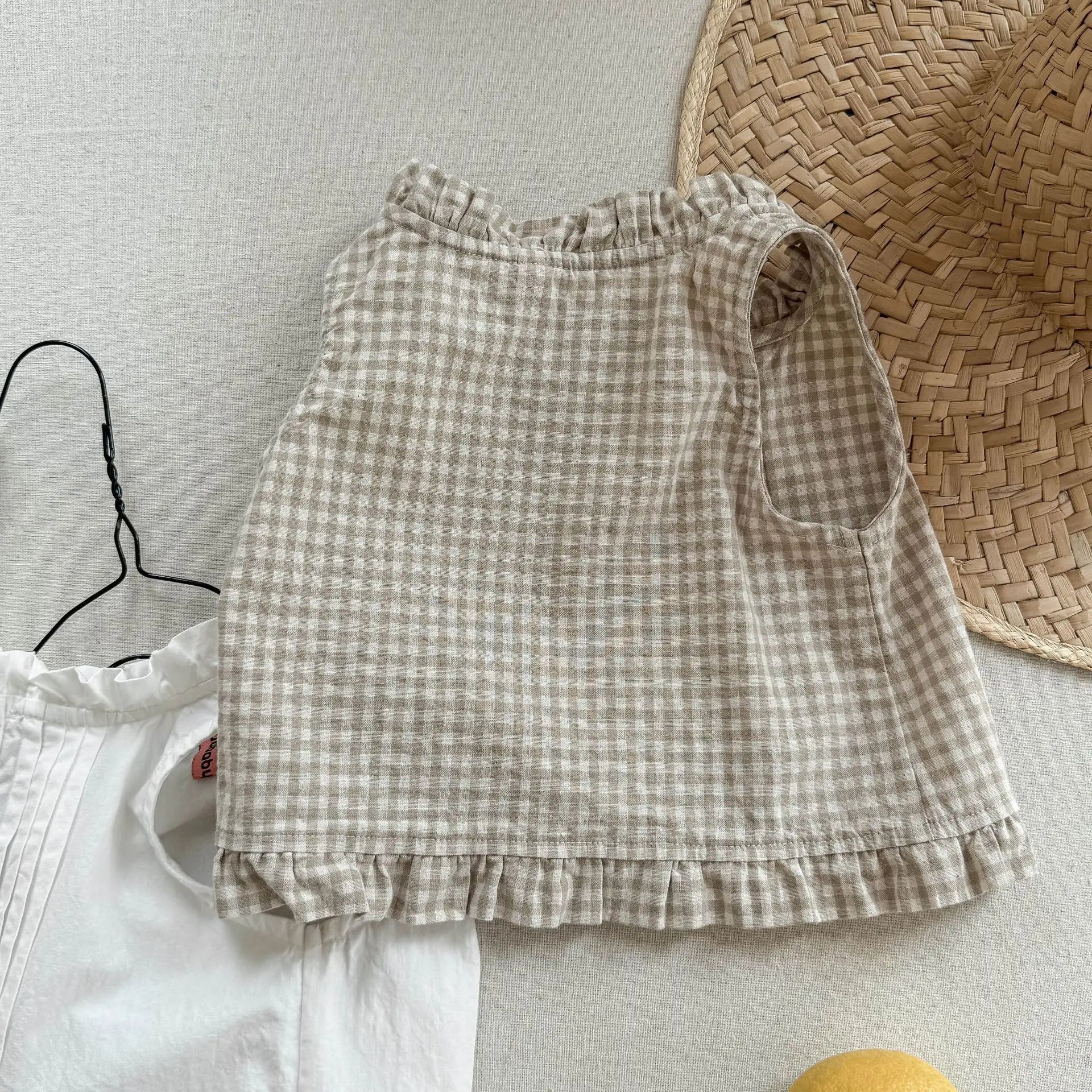 2025 Summer New Girls Sleeveless Lace Shirts Children Cotton Vest Baby Girls Blouse Solid Loose Princess Tops Kids Clothes