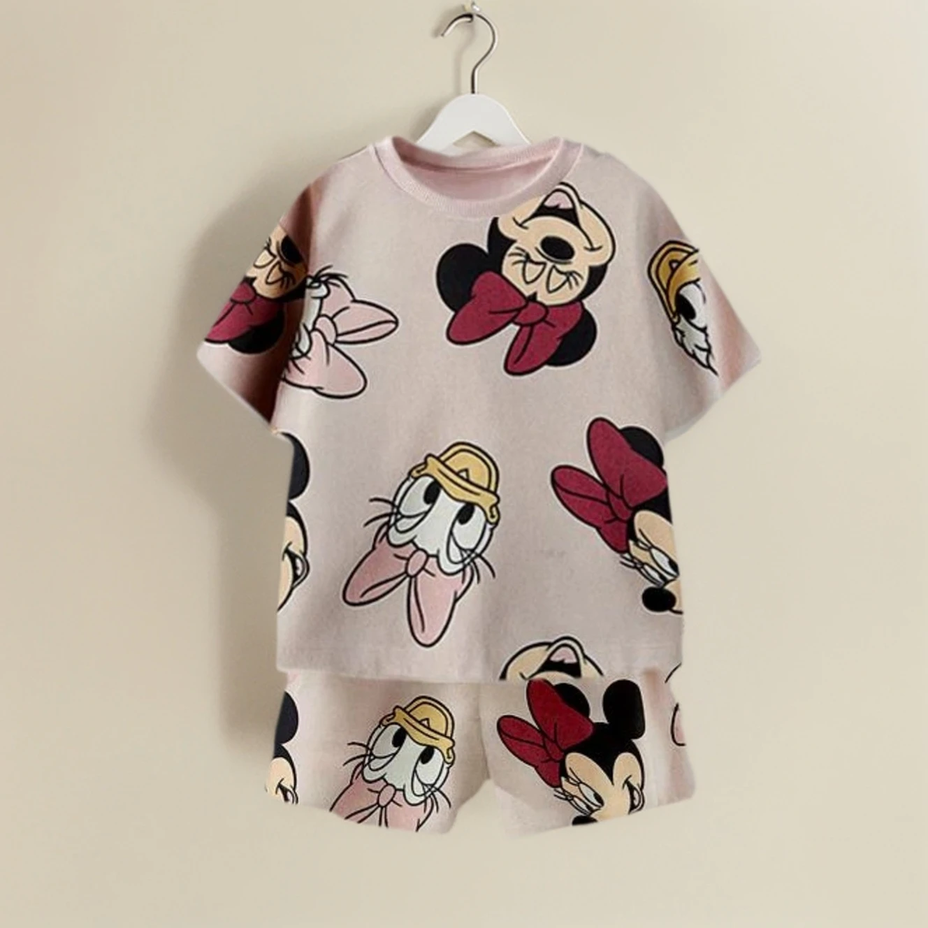 2025 Summer Toddler Suits 2pcs T-Shirt Top+Short Pants Disney Mickey Friends Print Crew Neck Sweatshirt Sets Kids Casual Outfits