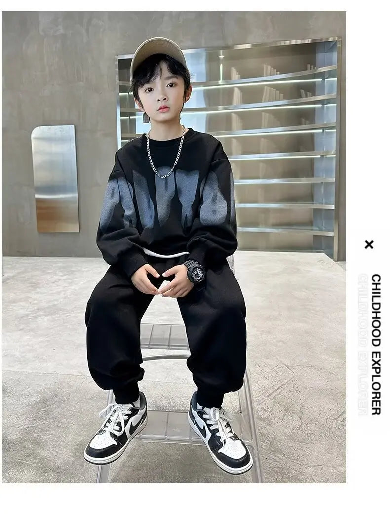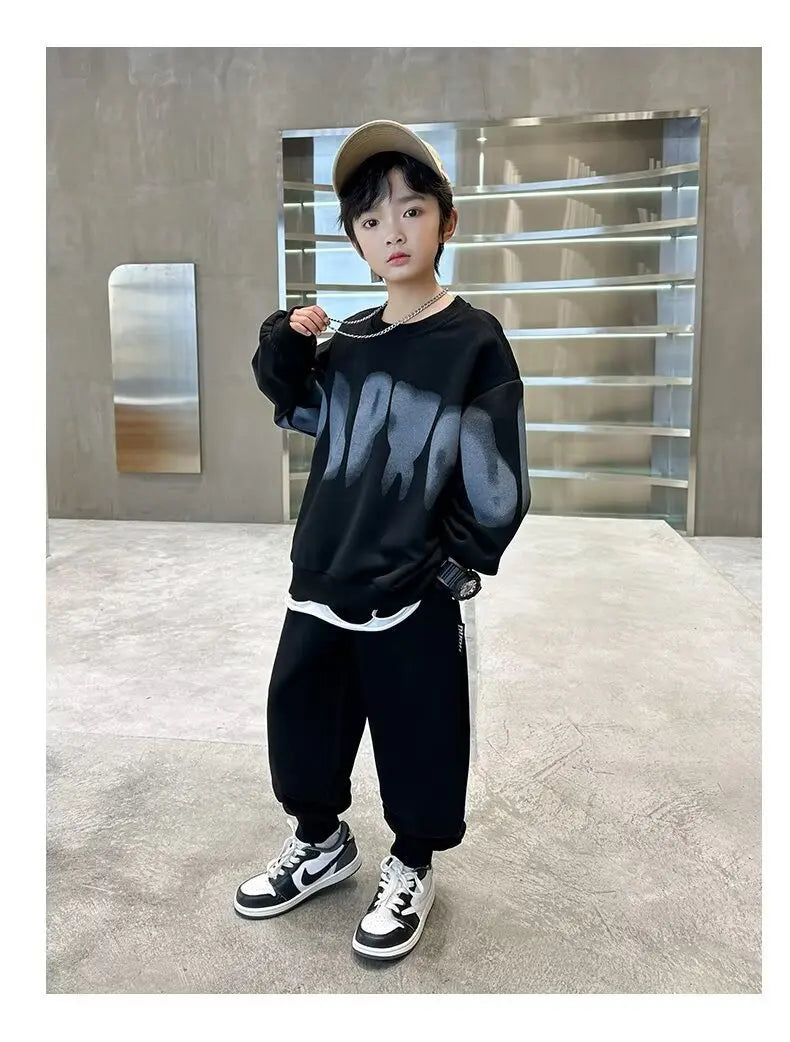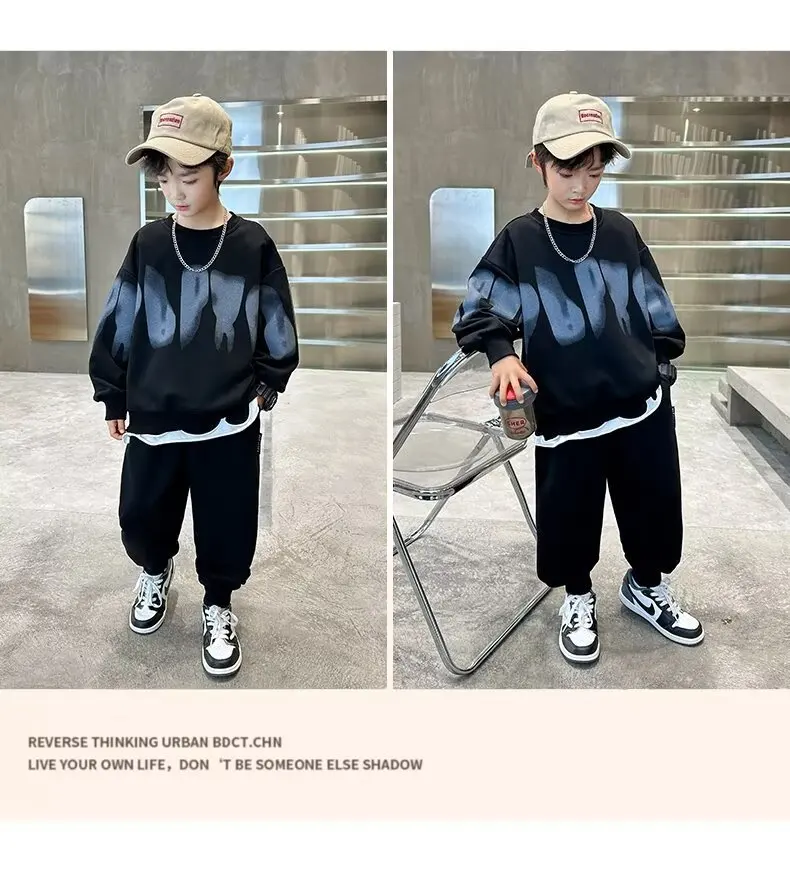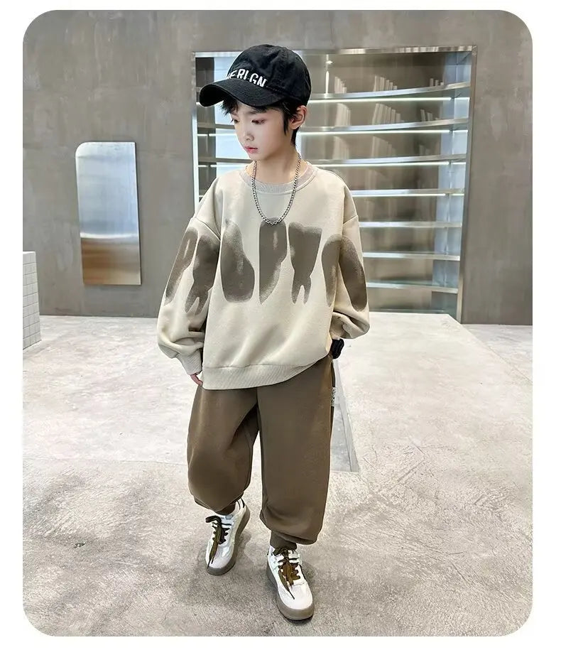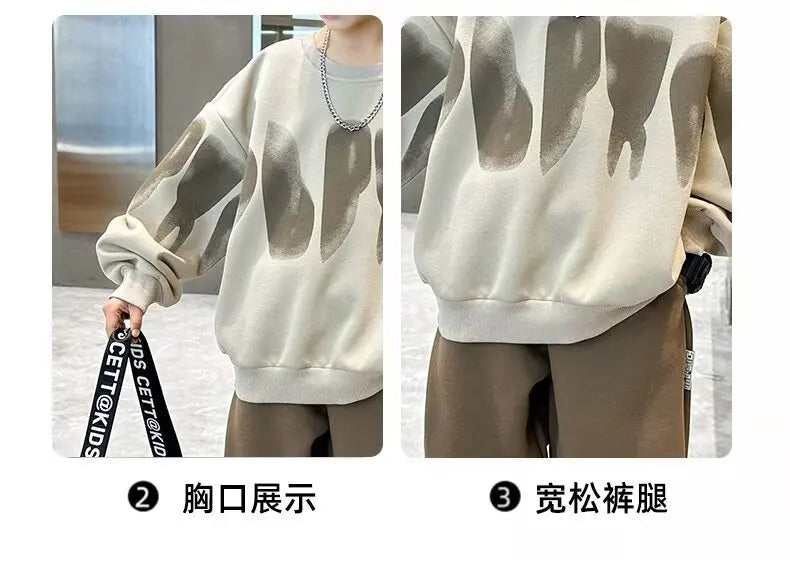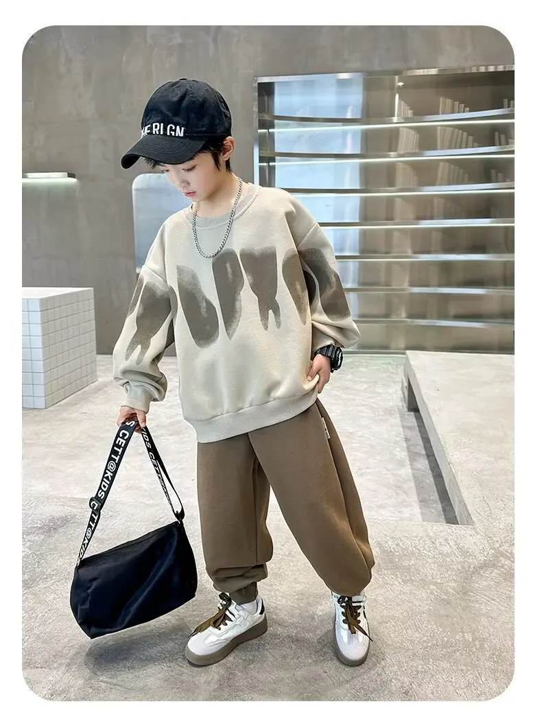 2025 winter autumn Boys Clothes Set cotton loose Sweatshirt hooded + Pants Tracksuits Kids Suit Children 4 8 9 10 11 12 14 Year