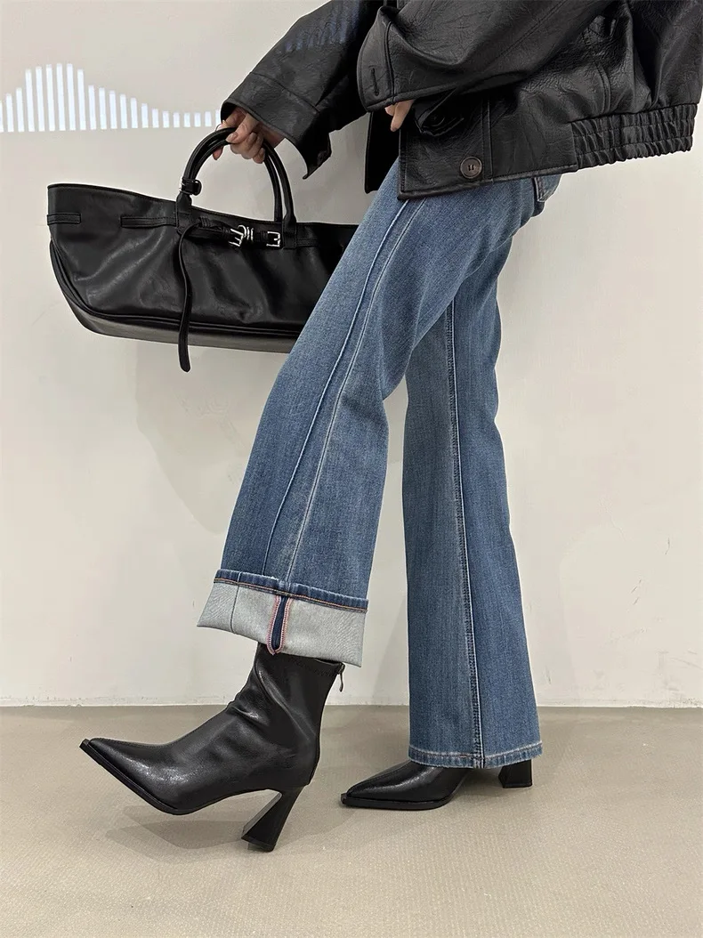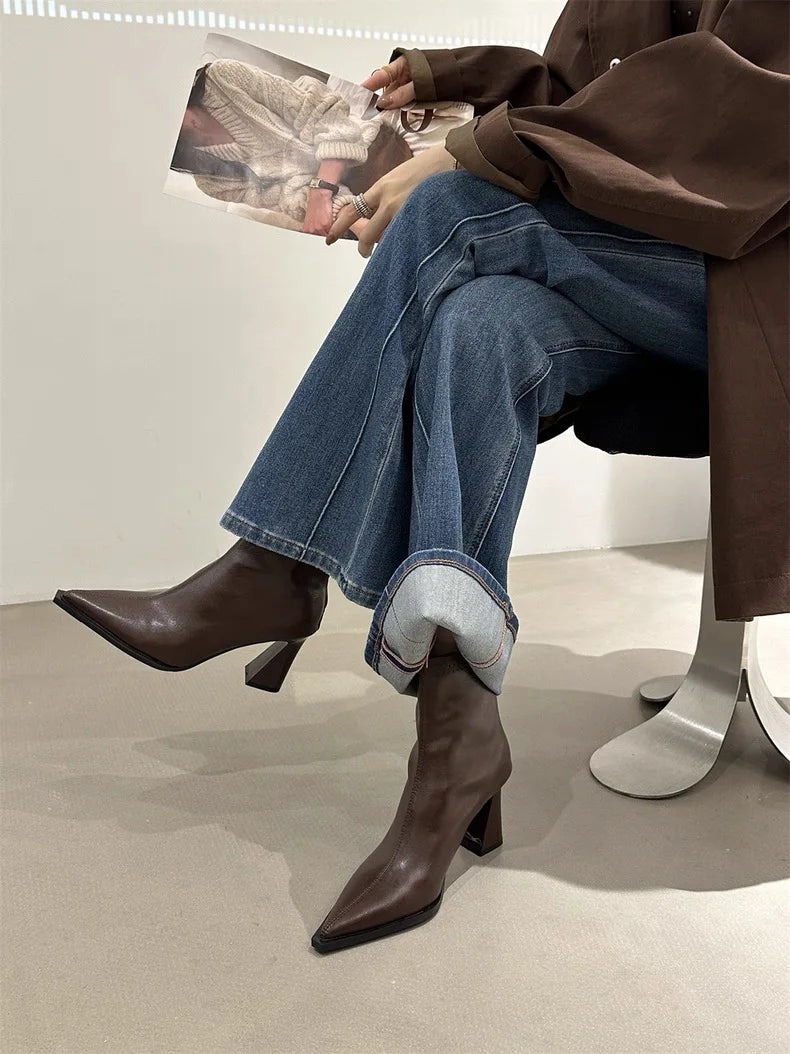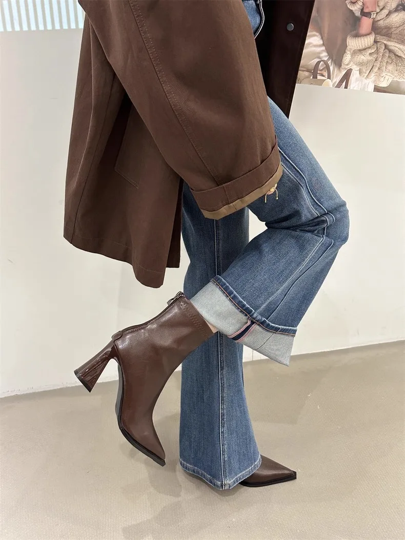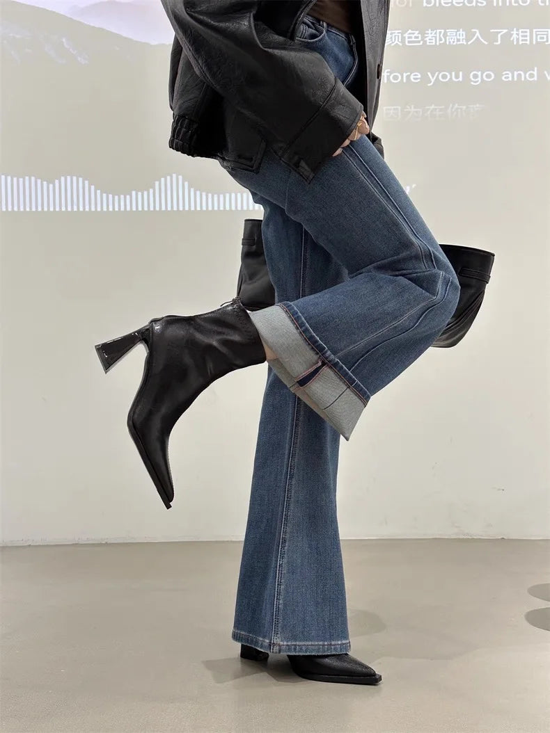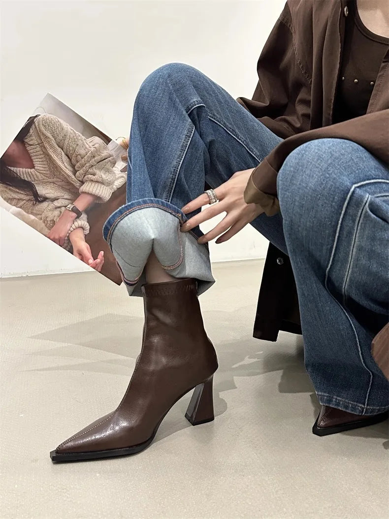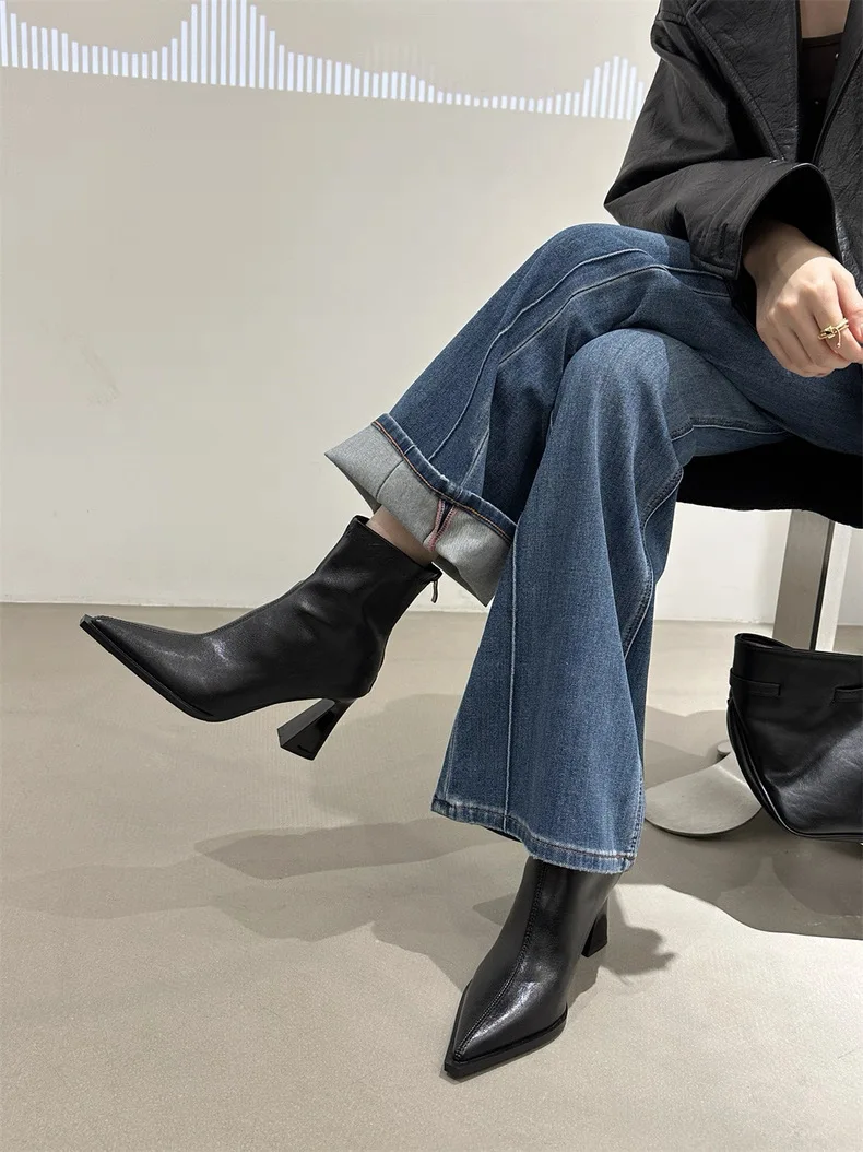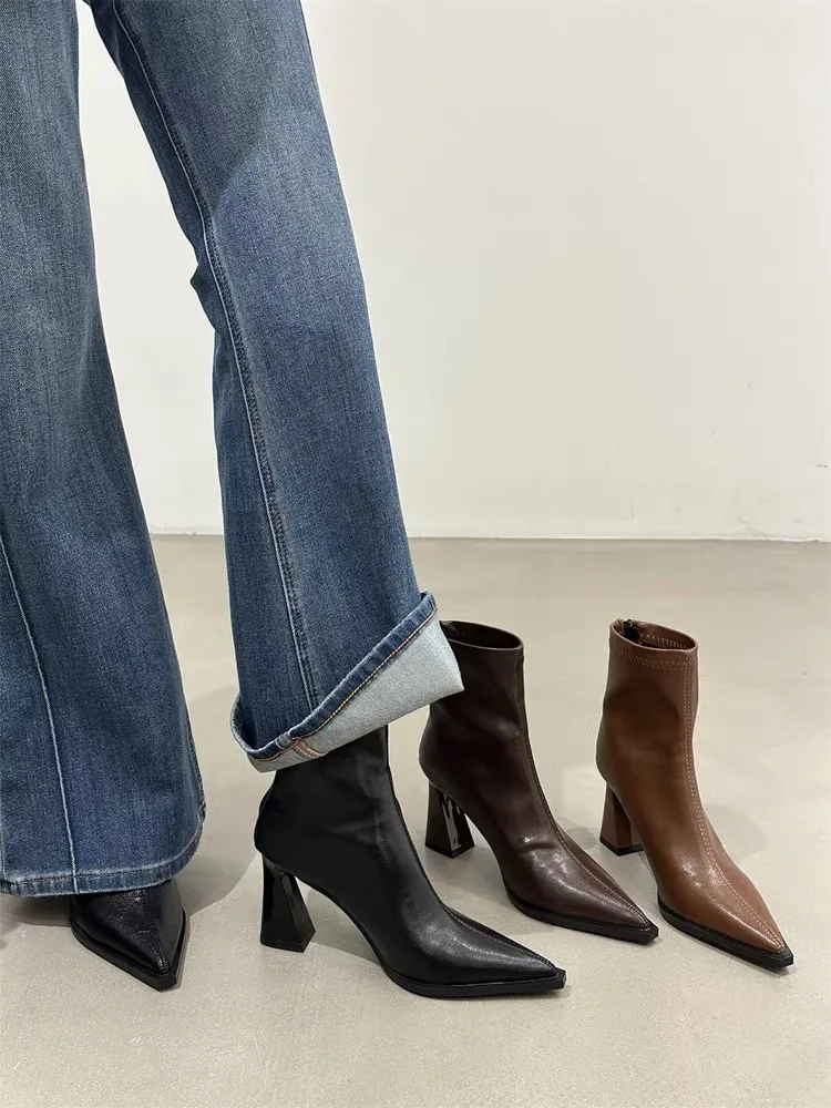 2025 Women Fashion Chelsea Ankle Boots Basic High Heels Boots Pointed Toe Shoes Women Band Non-slip Comfortable Boots 9989