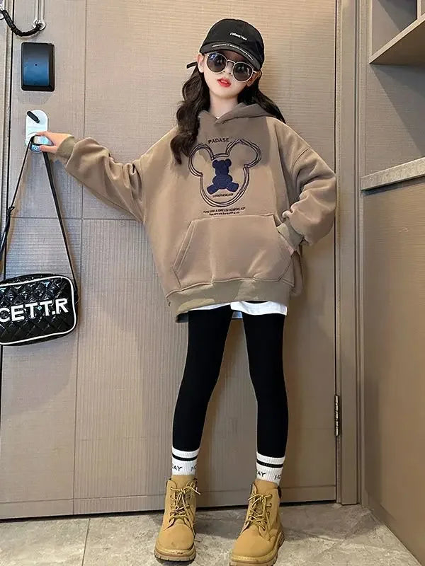 2026 girls clothes spring winter sweatshirt bear t-shirt hooded + stretch pants leggings teens children set 8 9 10 11 12 year