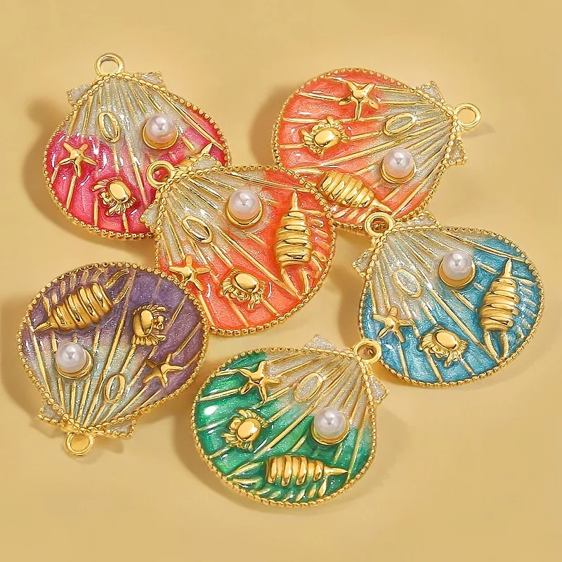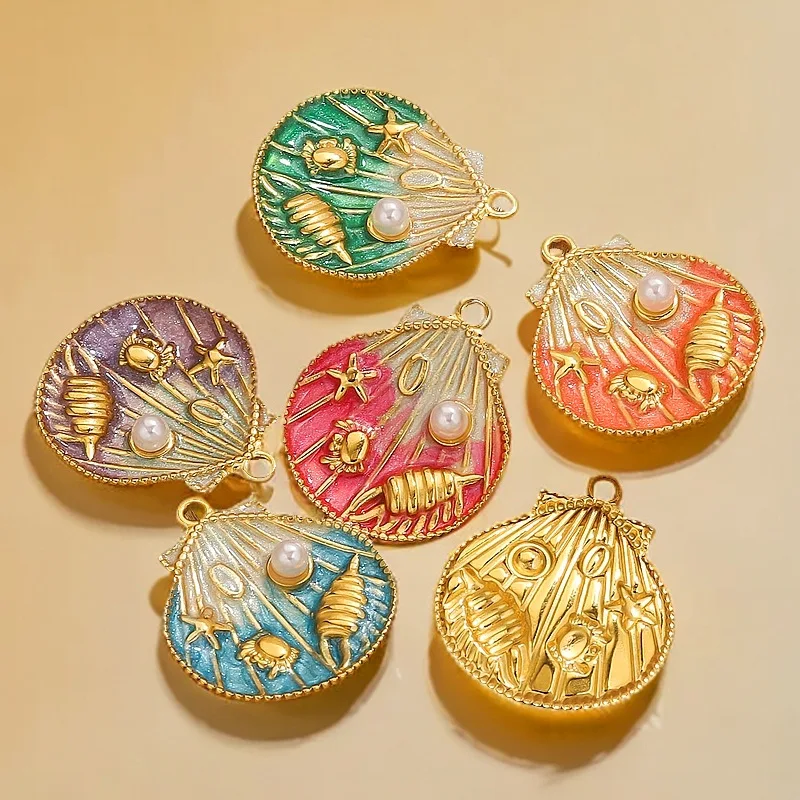 2pcs Handmade Shell Pendant Charms Stainless Steel Necklace Earrings Pendant Connectors Diy Jewelry Making Accessories