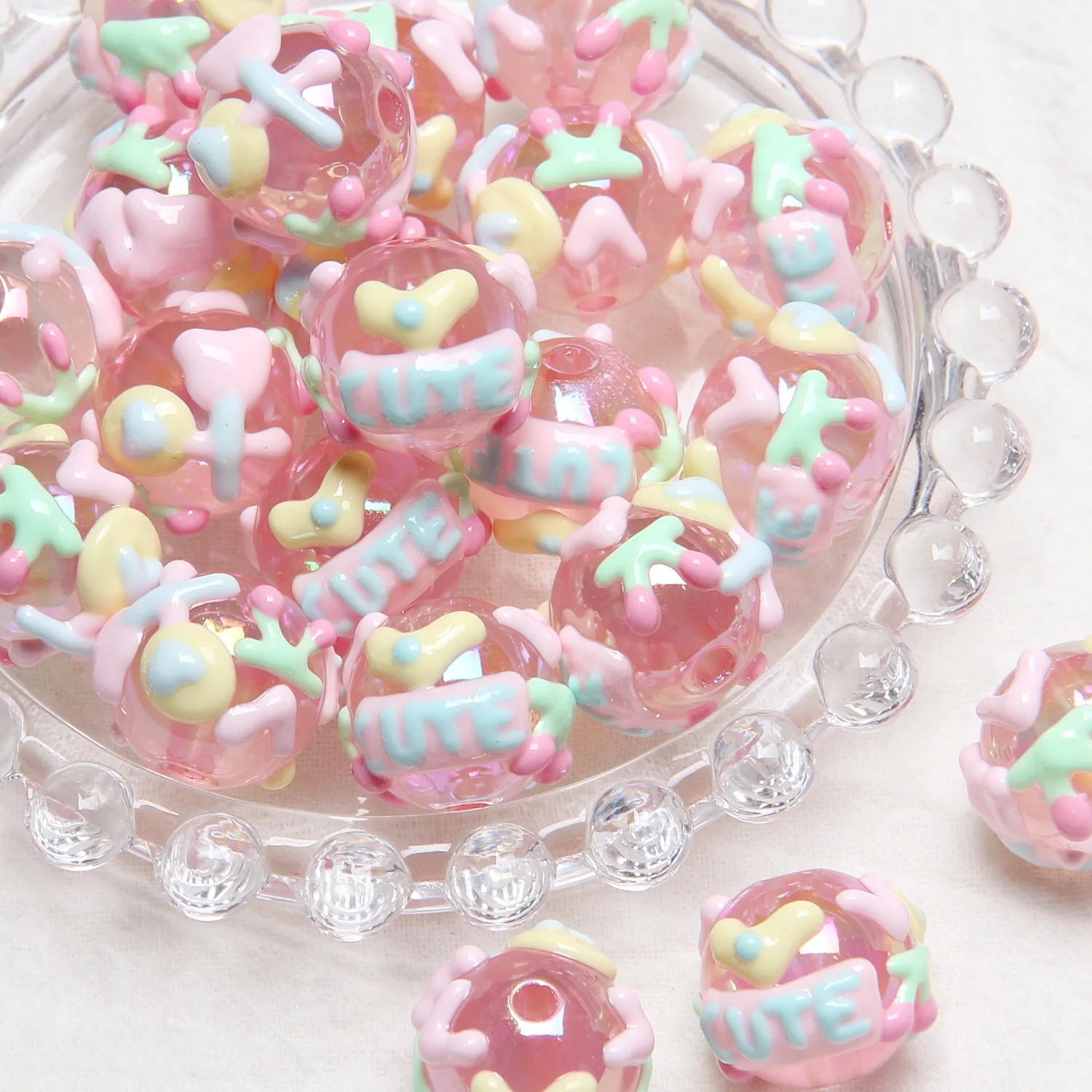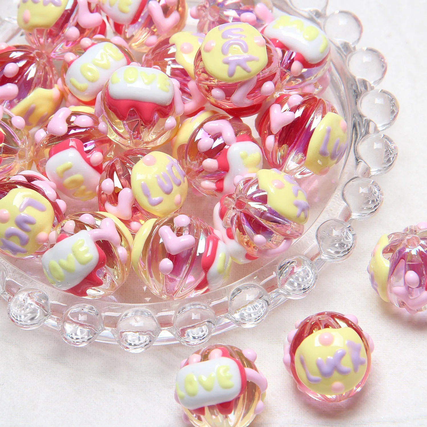 5 Pcs 18mm Heavy Oil Fruit Hand Painted Acrylic Beads Spacer Beads for Jewelry Making DIY Bracelet Necklace Drop Earrings