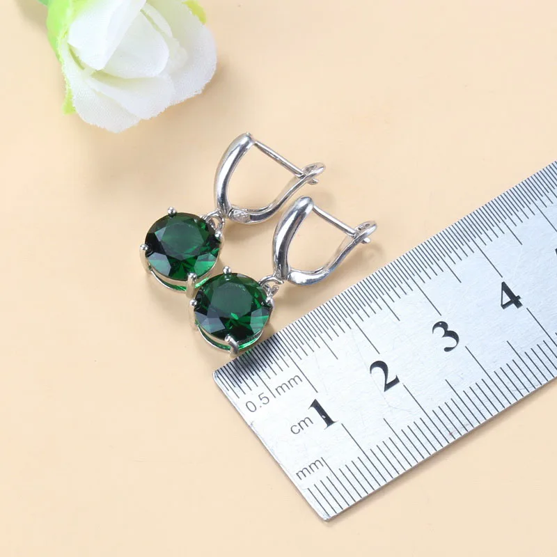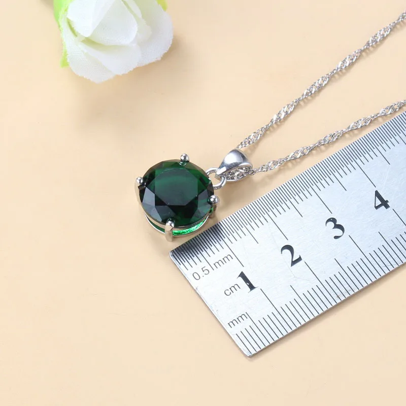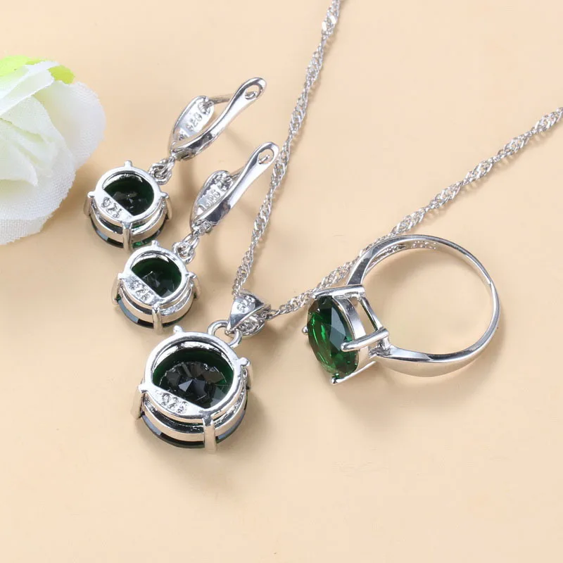 925 Silver Round Green Bridal Wedding Jewelry Sets Cubic Zirconia Trendy Costume Earrings Pendant And Necklace Sets For Women