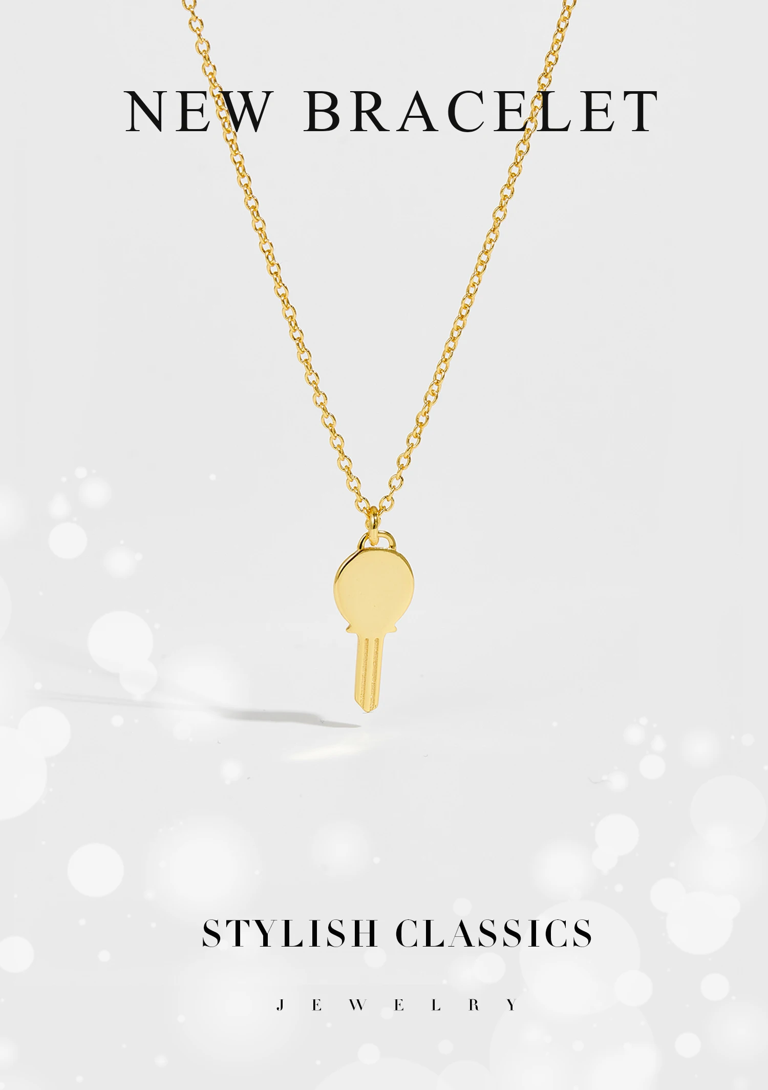 ANDYWEN 925 Sterling Silver Key Pendant Locker Long Chain Small Tiny Fashion Fine Jewelry 2021 Wedding Jewelry Gift