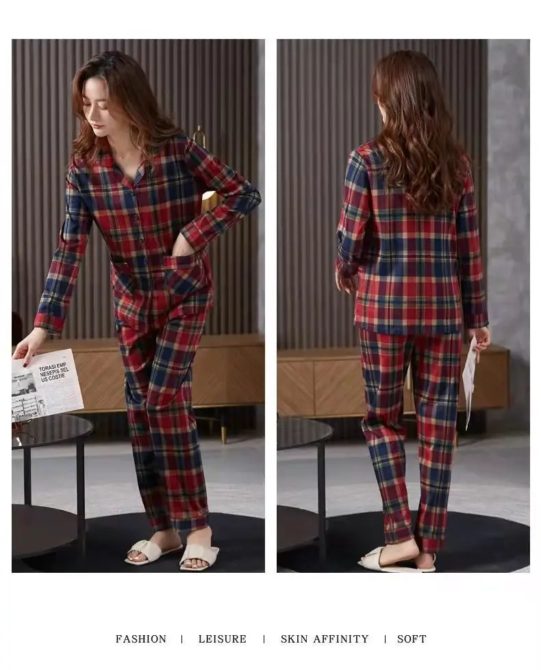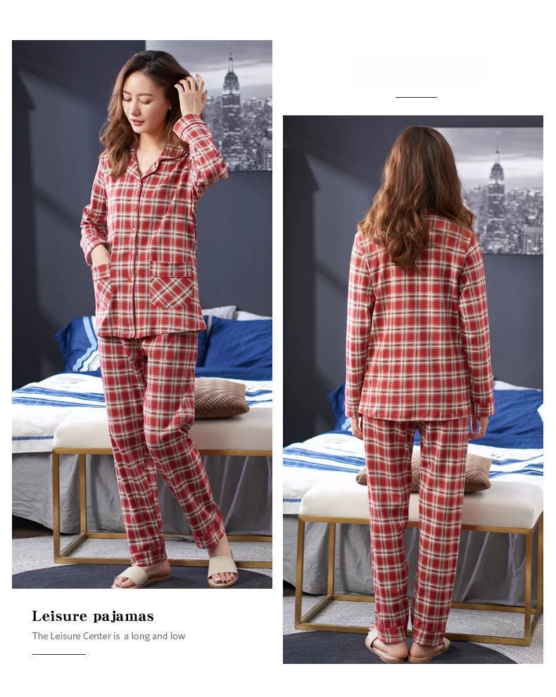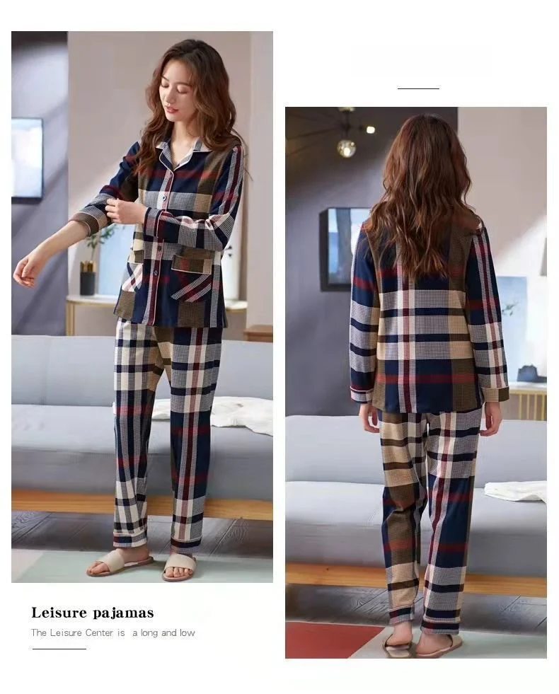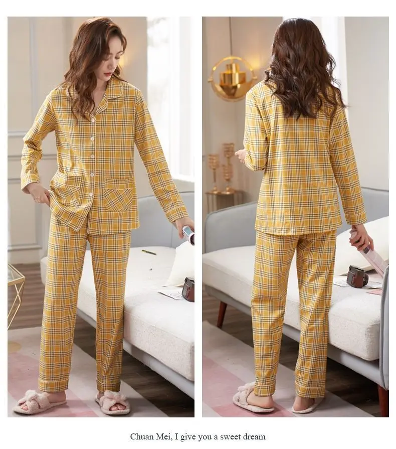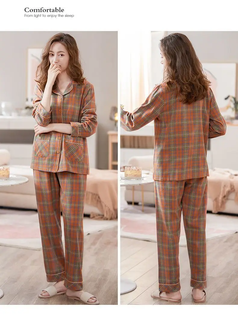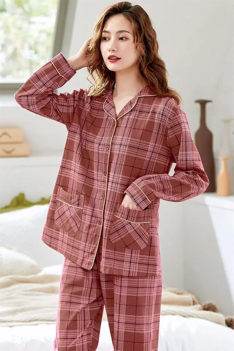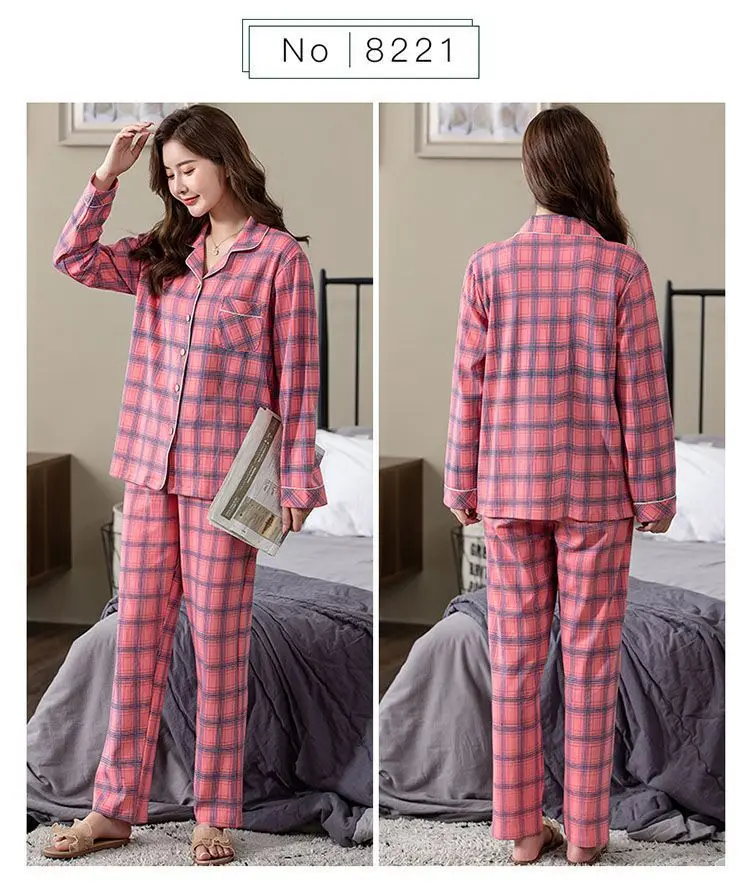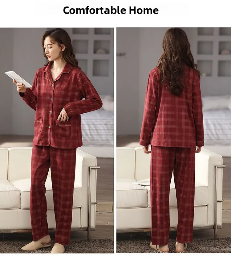 Antibacterial Pure Cotton Sleepwear Long Sleeve Loose Home Clothes Set for Women plus Size Spring Summer Autumn Winter