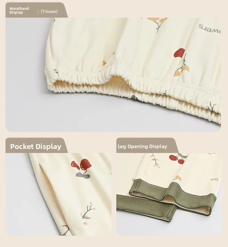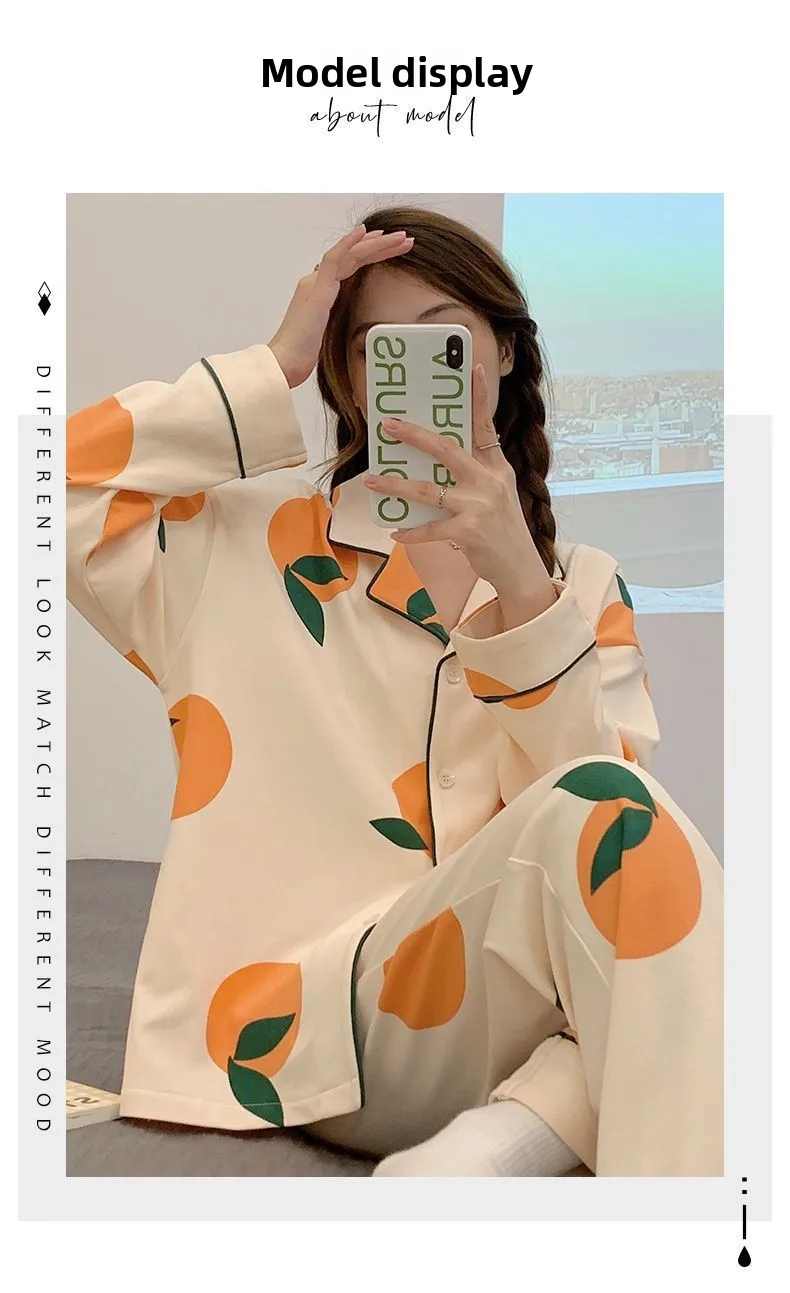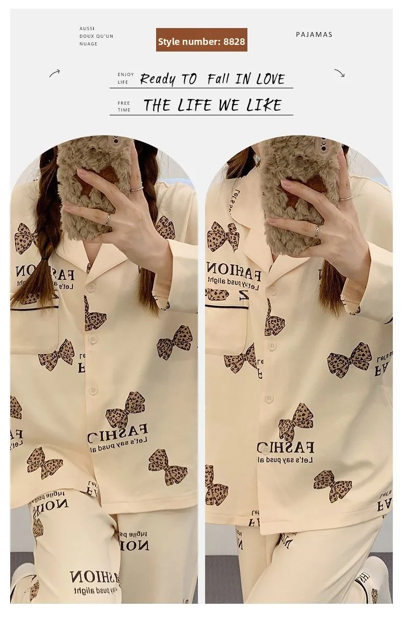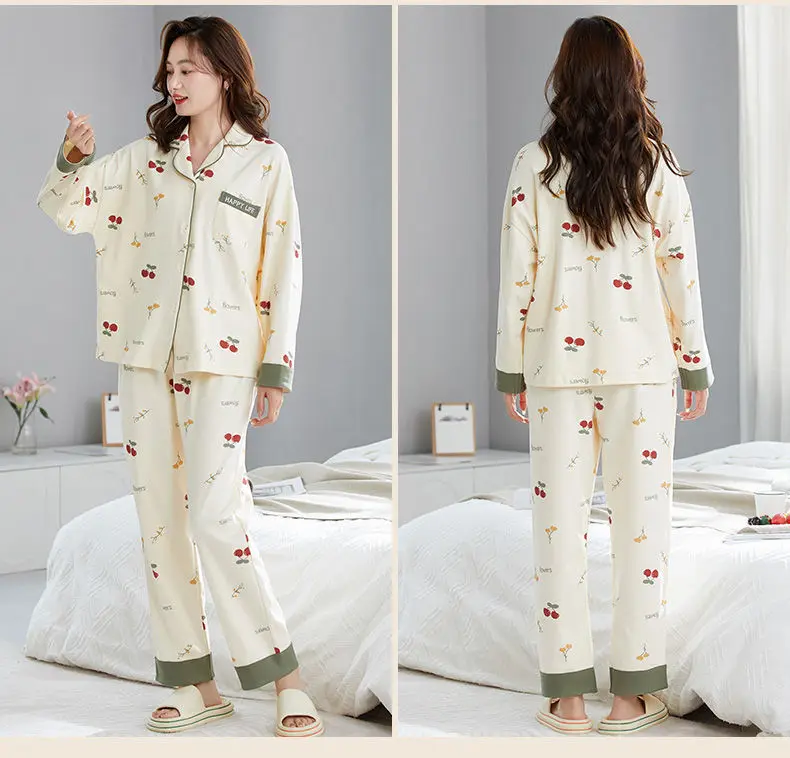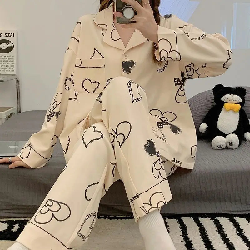 Antibacterial Pure Cotton Sleepwear Set for Women Loose Long Sleeve Home Clothes Cardigan Pants Fashionable Korean Style