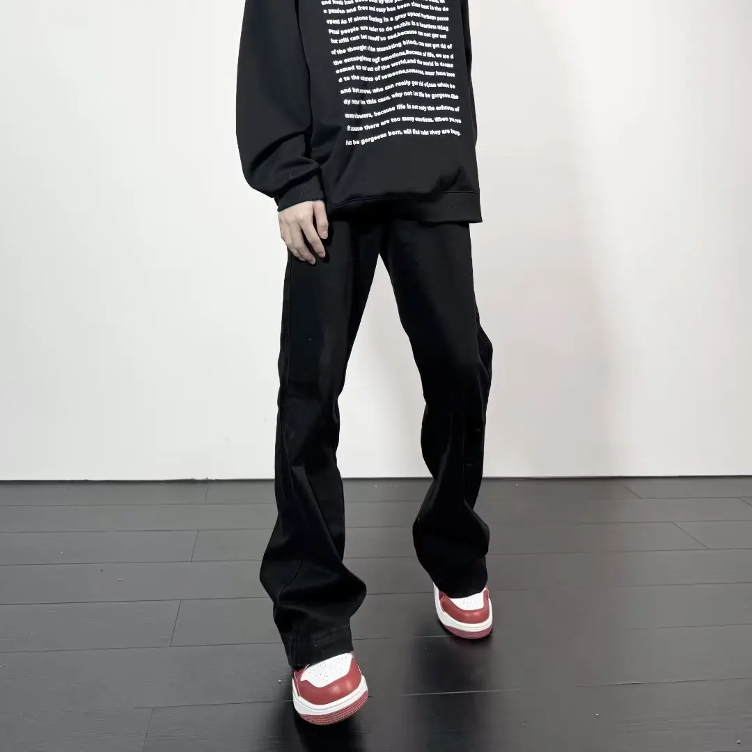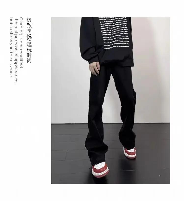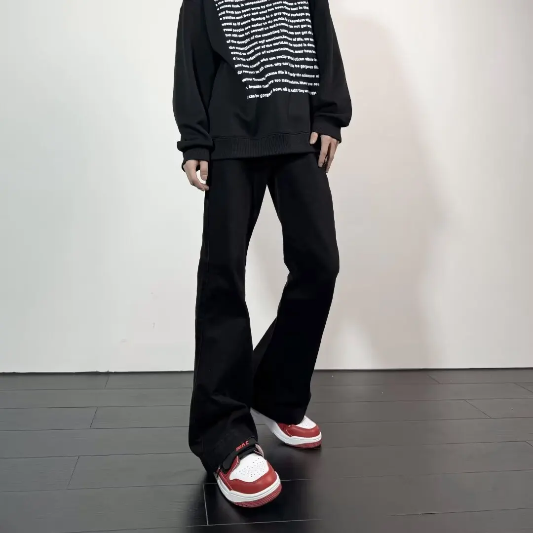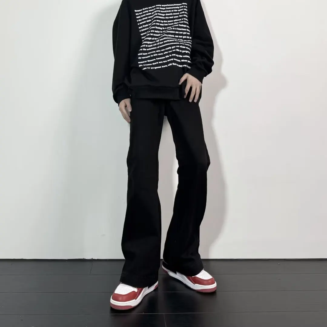 Black Jeans Men Casual Simple All-match Flare Sleeve Handsome Streetwear Daily Fashion Stretchy American Style Pantalon Homme