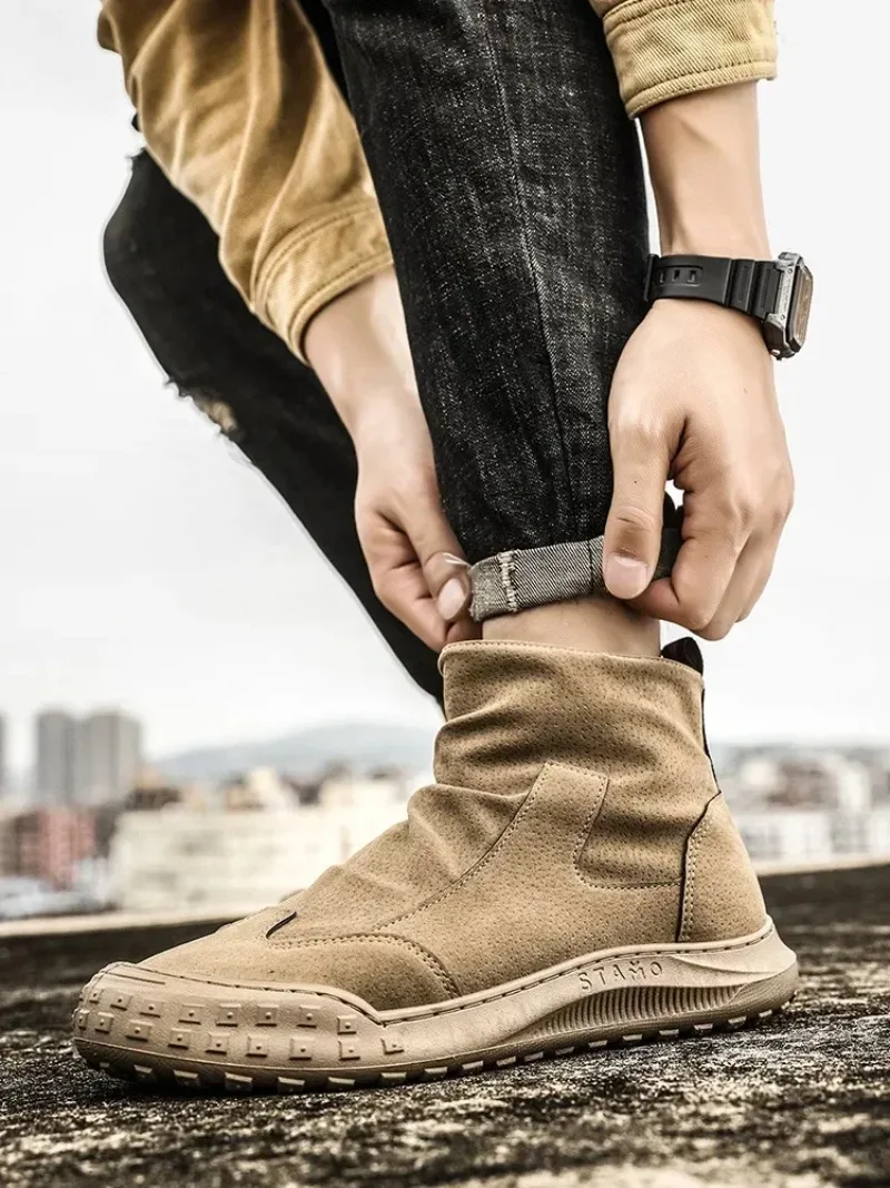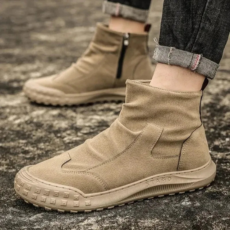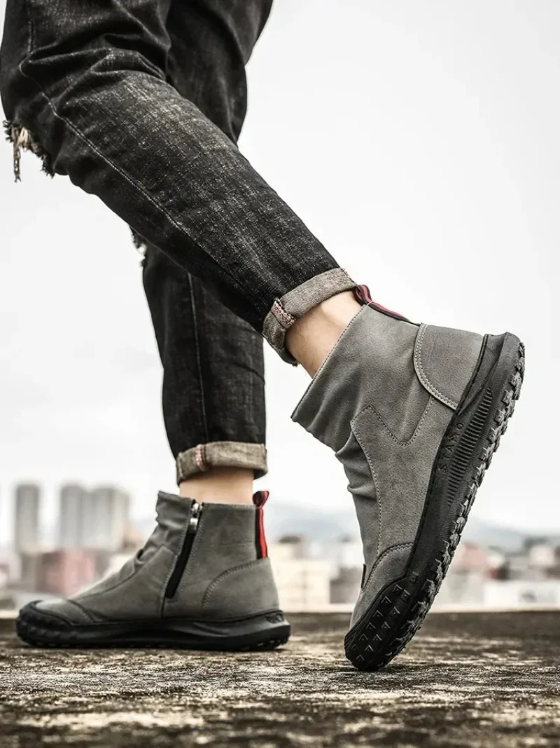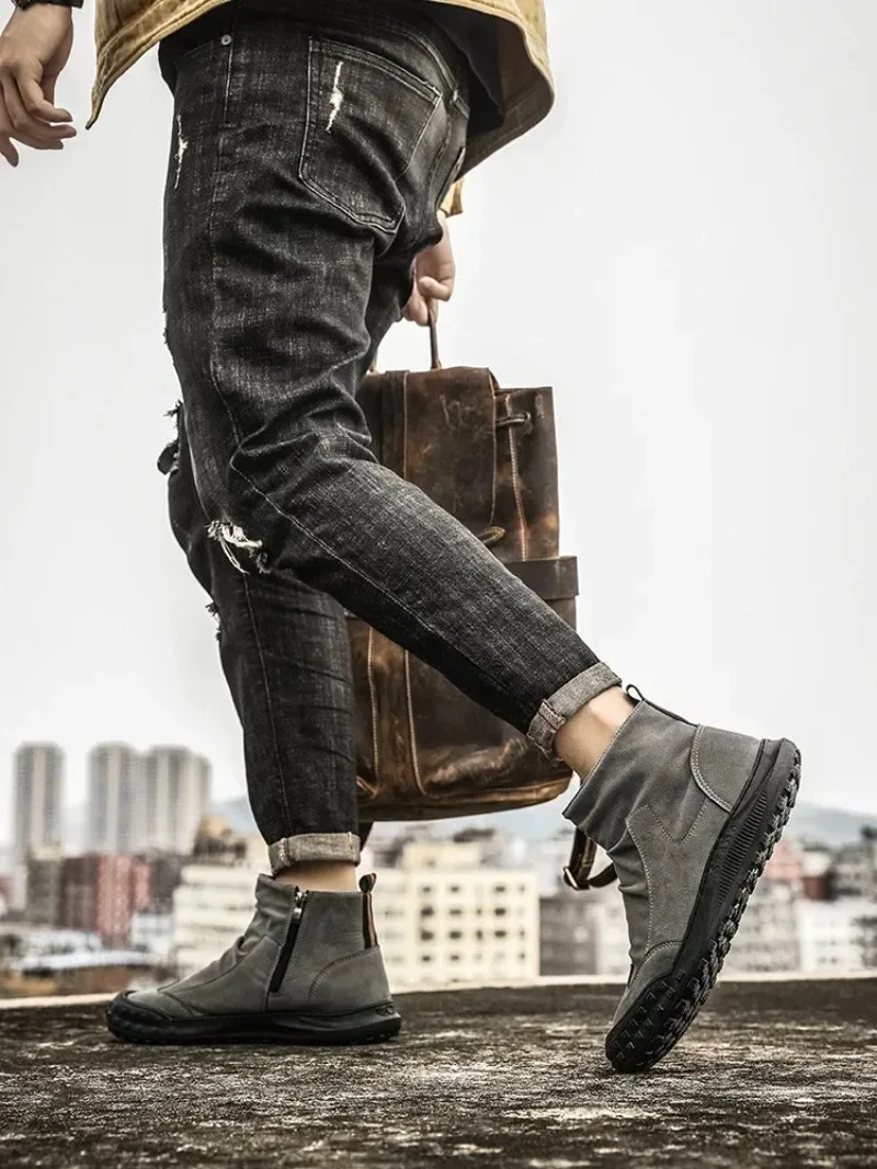 Boots for Men Retro Side Zipper Men's Ankle Boot Pleated Designer Men Boots Outdoor Non Slip Workwear Booties Botas Para Hombre