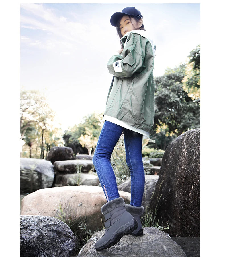 Boots for Women Platform Outdoor Snow Boots Non-slip Winter Walking Shoes Fur Warm Ankle Boots Wedge Waterproof Thigh High Boots