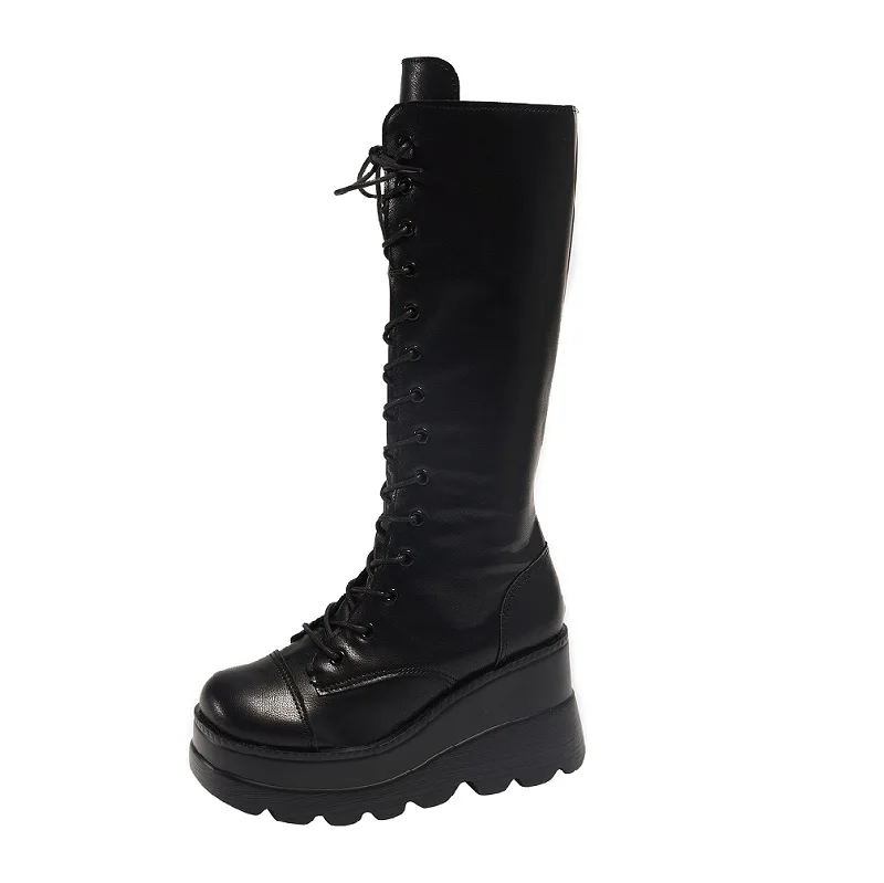 Boots Women Platform Shoes Punk Goth Lolita High Heels Winter Rain Combat Military Wedge Leather Black New Rock Clearance Offers