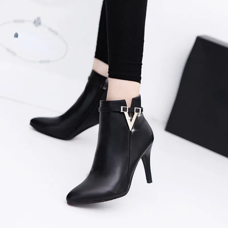 Botas Mujer Invierno Autumn Stiletto Thin High Heels Woman Pointed Toe Pu Leather Zipper Sexy Ankle Women Boot Botines Chelsea8