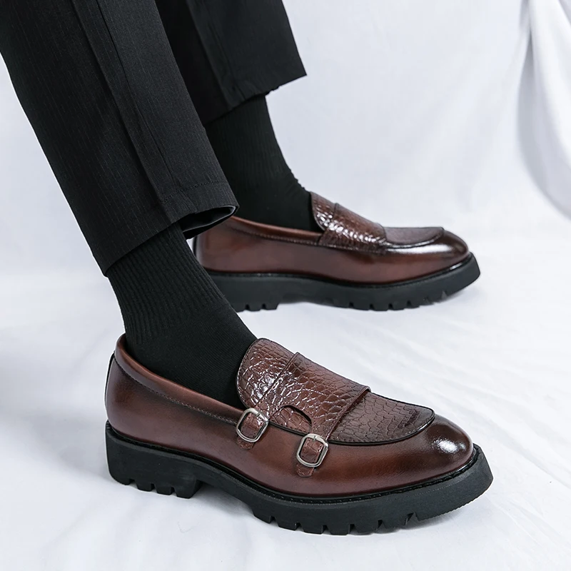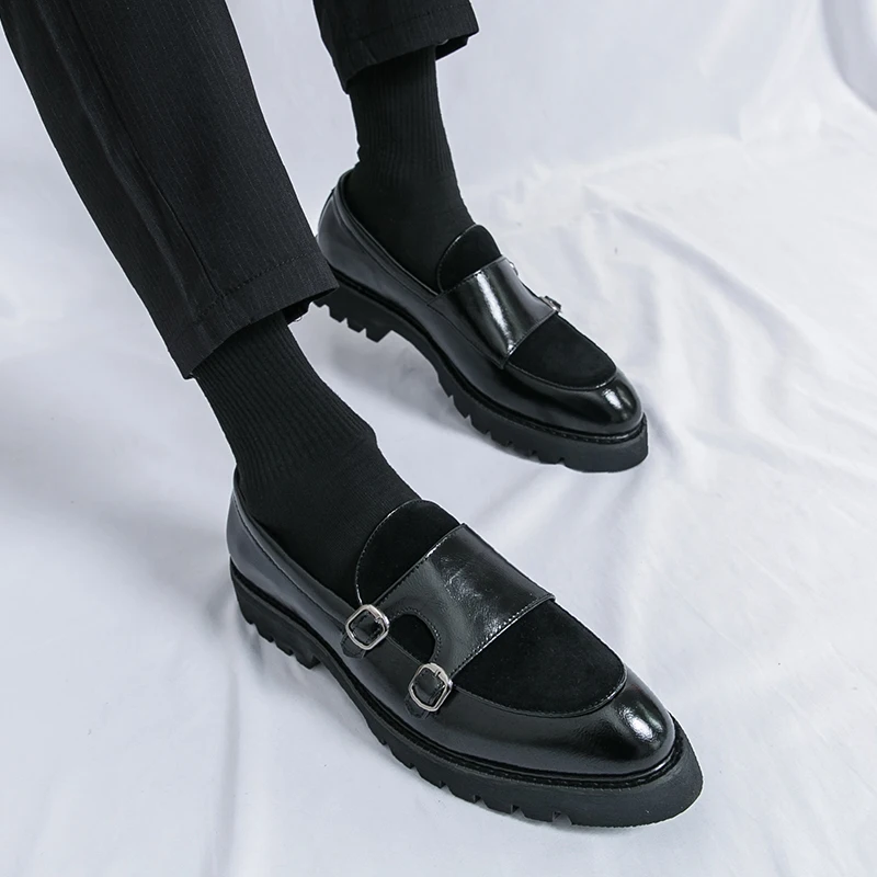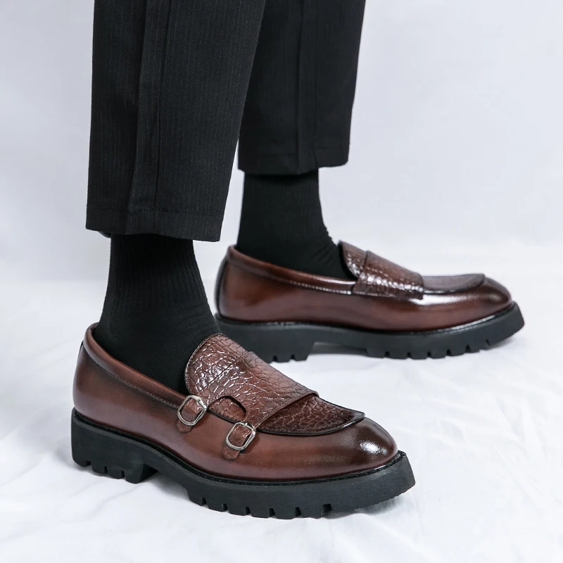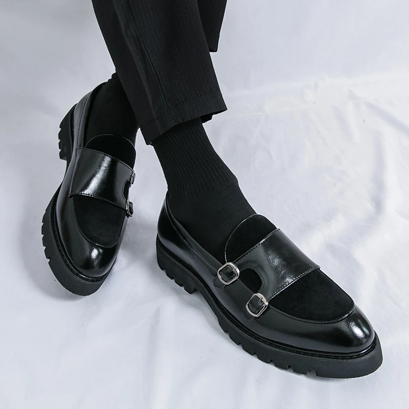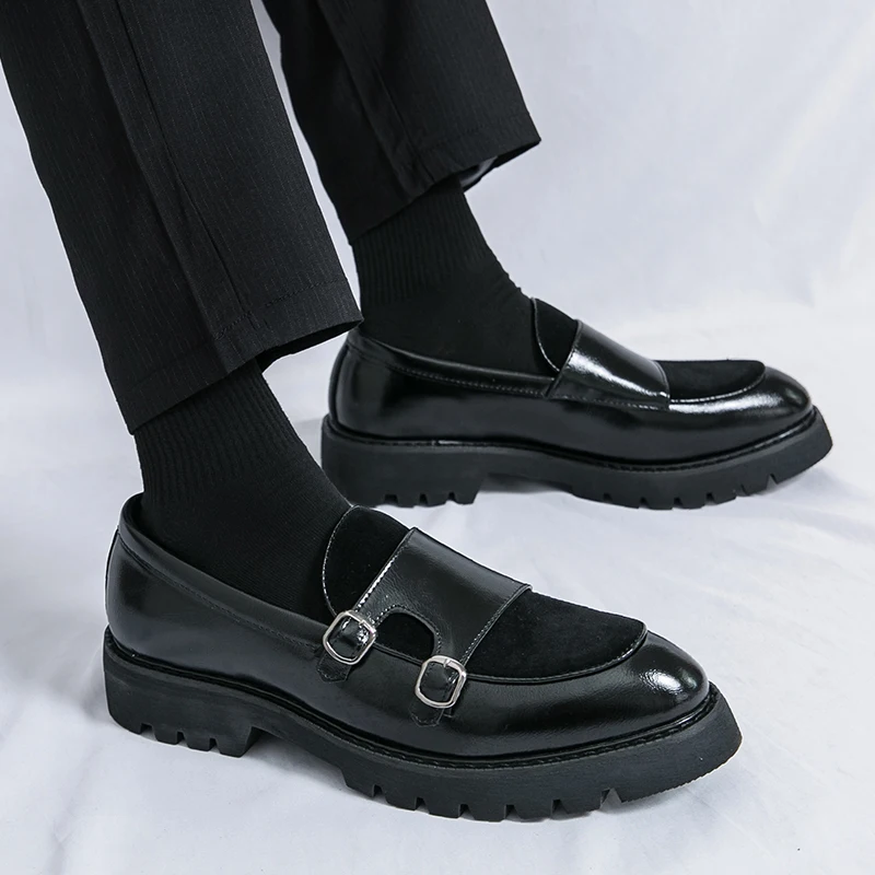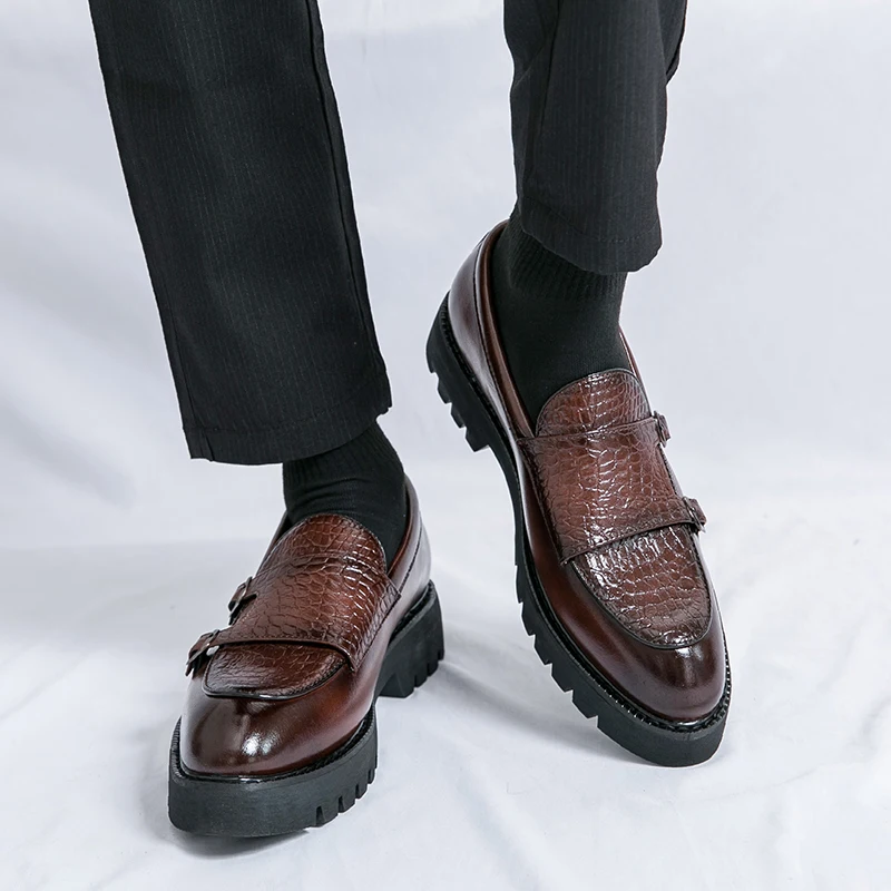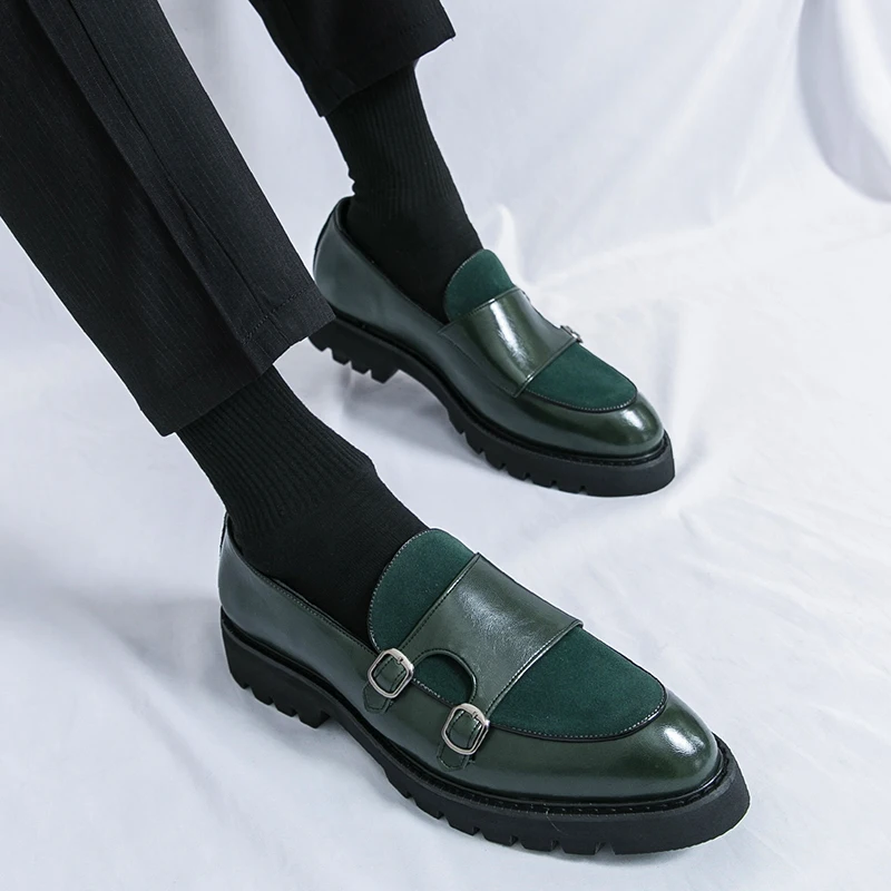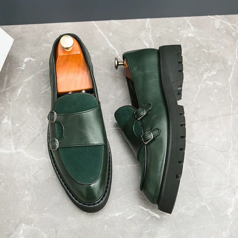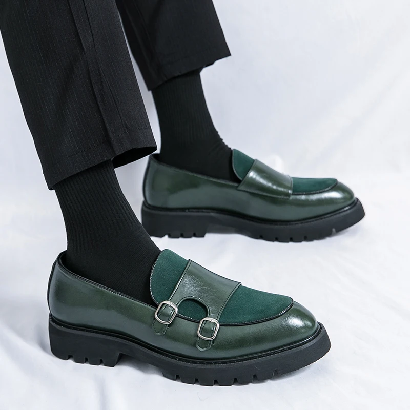 British Men's Shoes Trend Thick Soles High Height Loafers Green Outdoor Commuting Leather Casual Shoes for Men's Lightweight