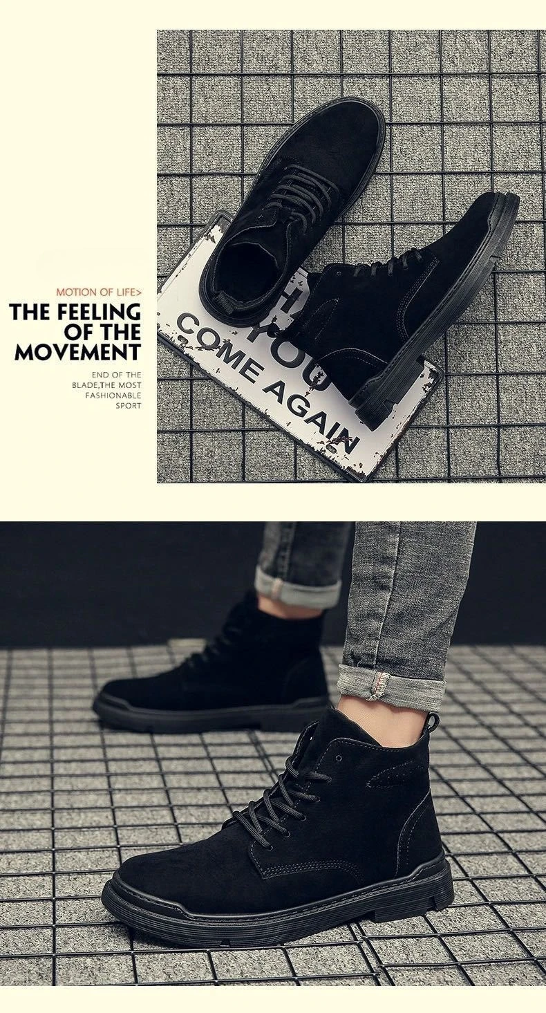 British Style Retro Men Boots High Top Platform Non-slip Wear-resistant Casual Shoes Outdoor Work Driving Boots Botas Hombre New