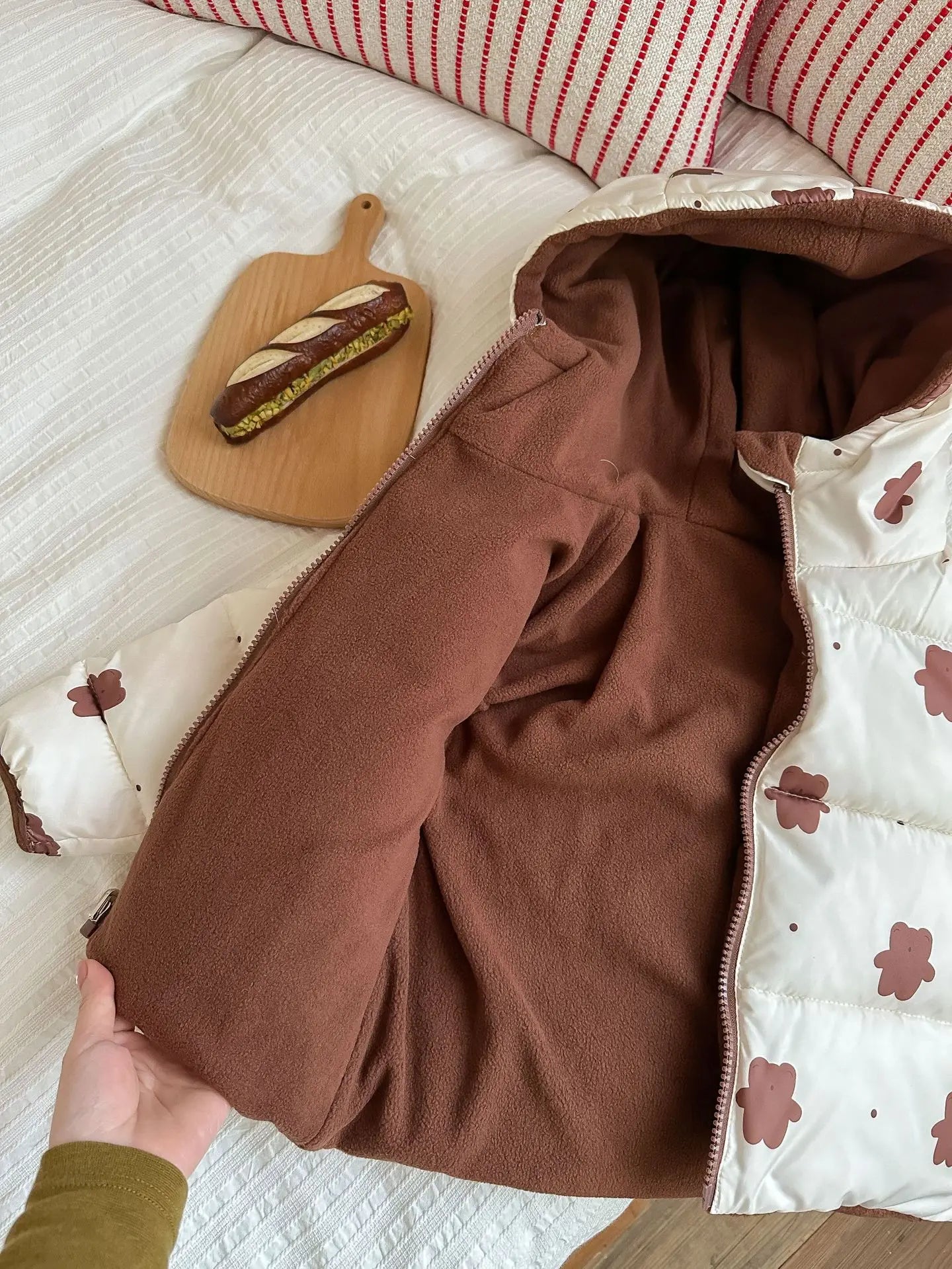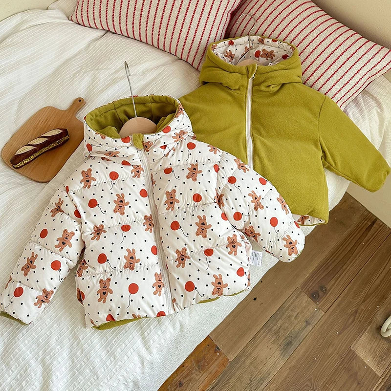 Can Be Worn On Both Sides Autumn Winter Boys Girls Jacket Cute Rabbit Ears Thicken Keep Warm Hooded Down Cotton Outwear For Kids